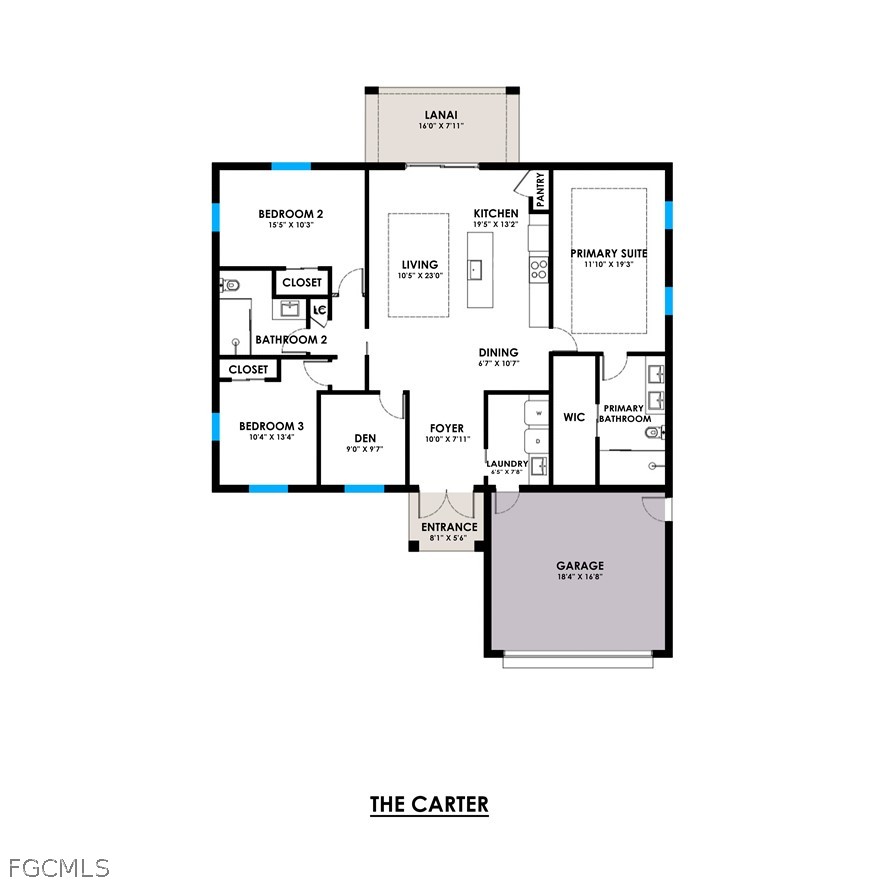Welcome to The Carter, a modern take on the classic split floor plan, offering 3 generously sized bedrooms, a den, 2 full bathrooms and an attached 2-car garage. Thoughtfully designed with the timeless theme of natural elements, like the rich wood hues of the cabinetry, balanced with delicately veined stone flooring and opulent quartz counters. The spacious open-concept great room flows seamlessly into the kitchen and dining area, featuring a large island and walk-in pantry perfect for entertaining. The private primary suite offers tray ceilings, dual vanities, and an oversized walk-in closet for a true retreat experience. A flexible den provides the ideal home office, fitness or guest space. Carefully constructed for strength and durability in our harsh SWFL environment, featuring impact-resistant windows and doors, the highest craftsmanship throughout, and backed by a builder’s warranty for peace of mind. Located in the fast-growing Lehigh Acres community with almost a quarter acre sized lot to call your own! Easy access to Fort Myers, shopping, dining, and recreation. Builder concessions are available for qualified buyers.
