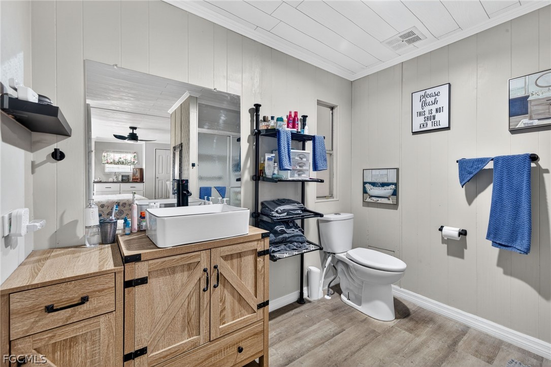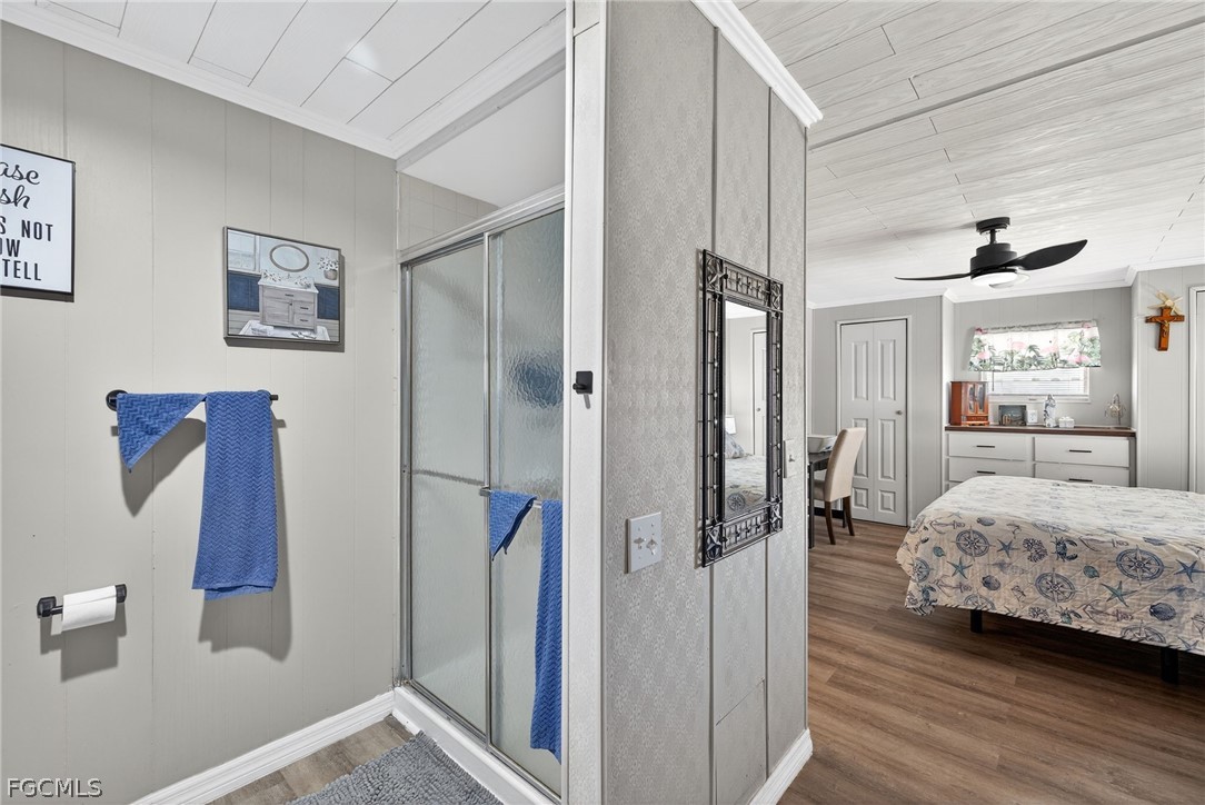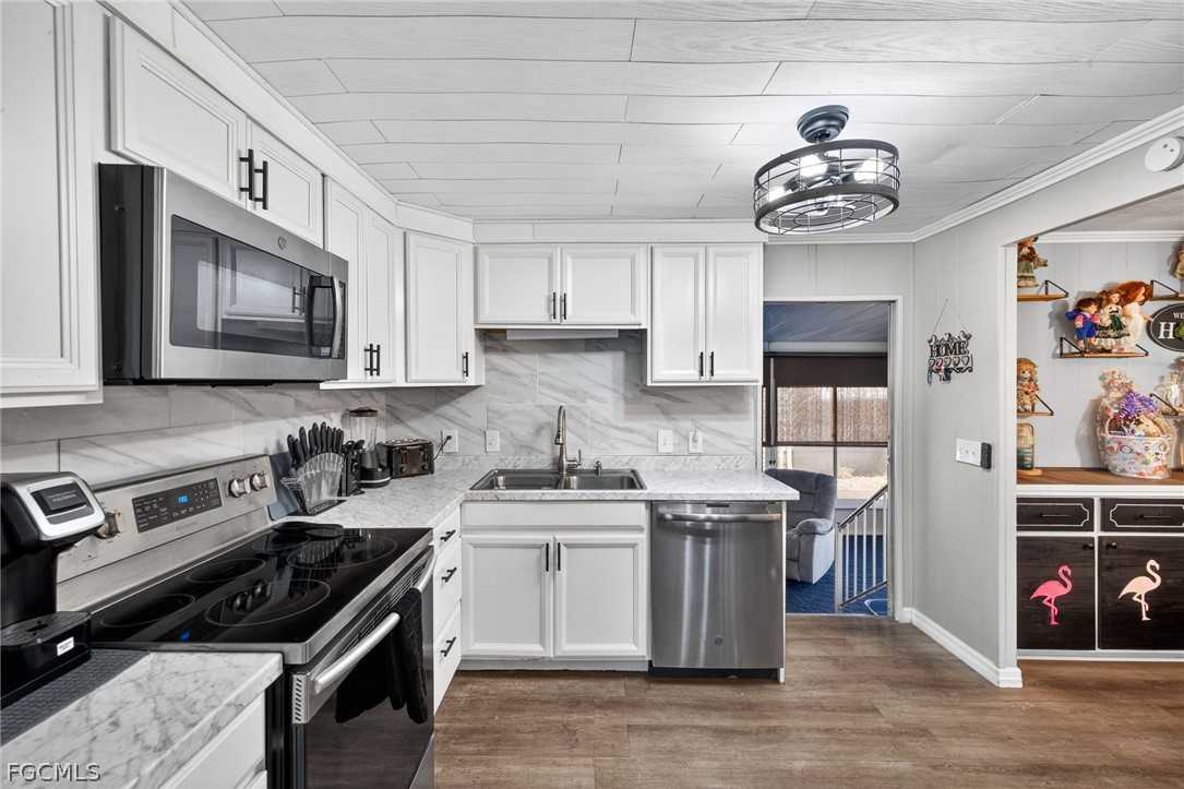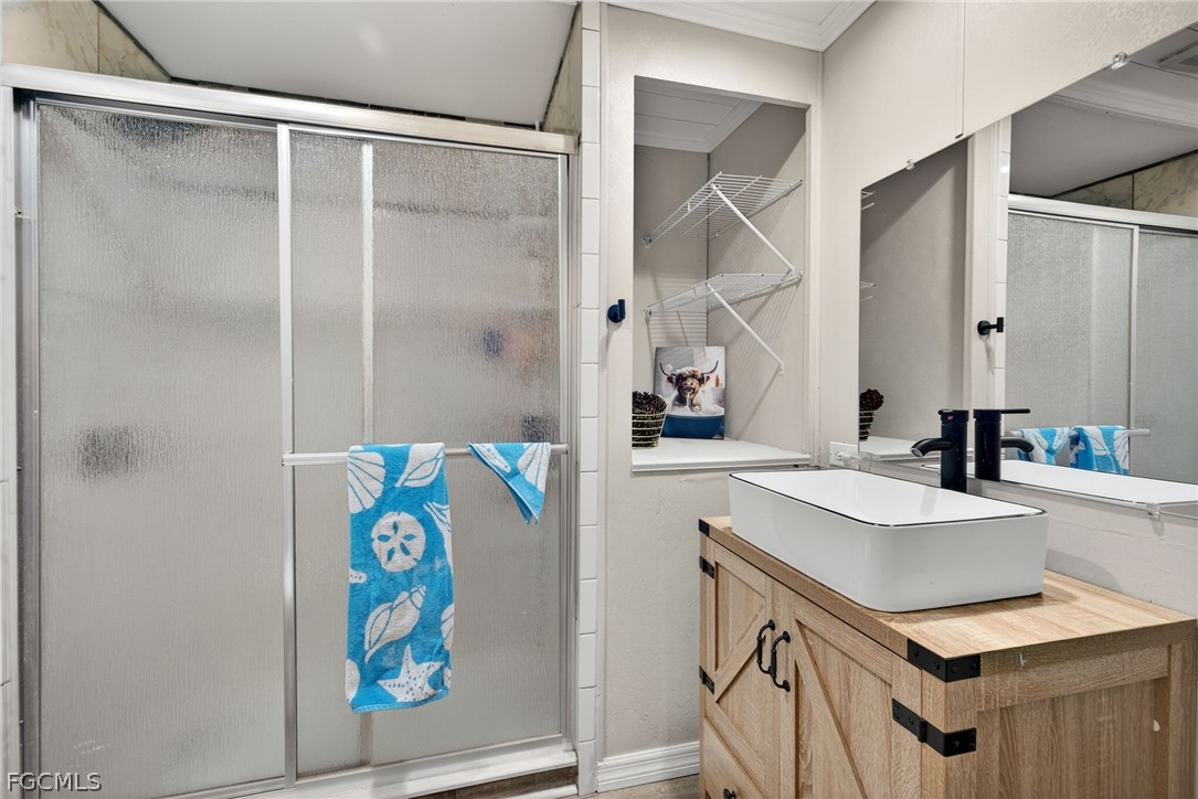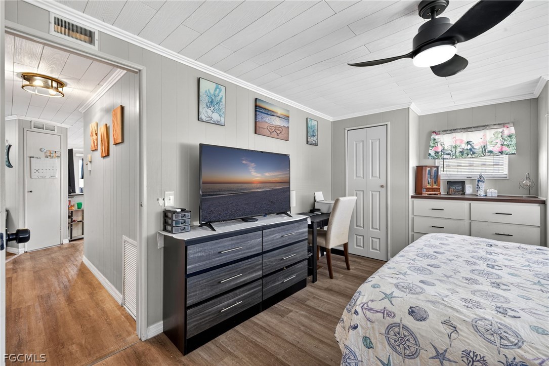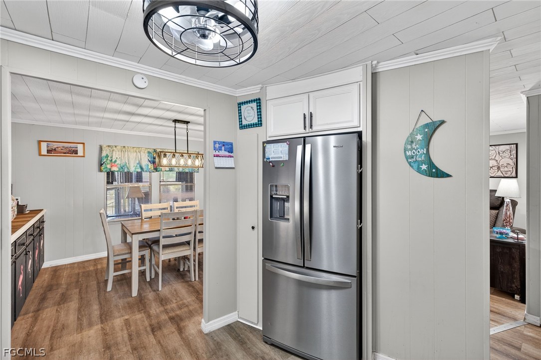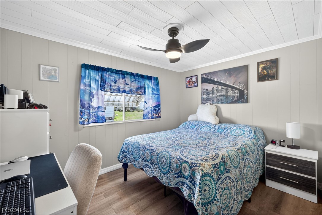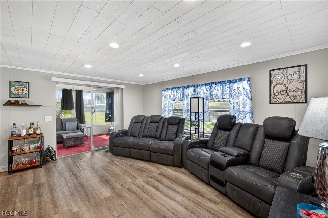 Welcome home to Lazy Days Village! This beautifully appointed home is perfectly situated at the end of a quiet, peaceful street, offering both privacy and charm. Step inside to a spacious, light-filled family room that flows seamlessly into an inviting eat-in dining area and a well-designed kitchen featuring stainless steel appliances, solid surface countertops, a stylish tile backsplash, and a convenient pantry. The generously sized primary suite is a true retreat, complete with a private bath showcasing farmhouse-inspired accents, a walk-in shower, and an oversized closet with abundant space for your wardrobe and accessories. Additional built-in storage, including a chest of drawers and extra closet space, ensures everything has its place. The second bedroom is thoughtfully positioned just across from the updated guest bath, which also features current farmhouse-style finishes. Luxury vinyl plank flooring runs throughout the main living areas and bedrooms, adding both durability and modern appeal. *METAL ROOF 2023 * ROOF OVER ON MAIN ROOF & LANAI 2024* WHOLE HOUSE REPLUMBED 2024* AND VAPOR BARRIER 2025*!! This home truly shines with not one, but two expansive enclosed spaces. The first is a spacious Florida room, accessed through sliding glass doors off the family room—perfect for relaxing or entertaining year-round. The second, located near the ground-level carport entrance and enhanced with custom blinds, offers incredible flexibility as a hobby space, bonus room, or additional entertaining area. Additionally, a large separate undercover laundry room provides even more versatility—perfect for use as a tool shed, hobby room, or extra storage space. Don't forget the amenities...take a stroll through this friendly, vibrant 55+ community and enjoy the heated pool, shuffle board, pickle ball, peaceful park like ponds, and lots of social events!