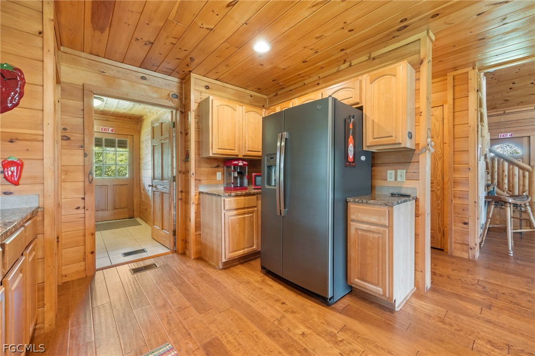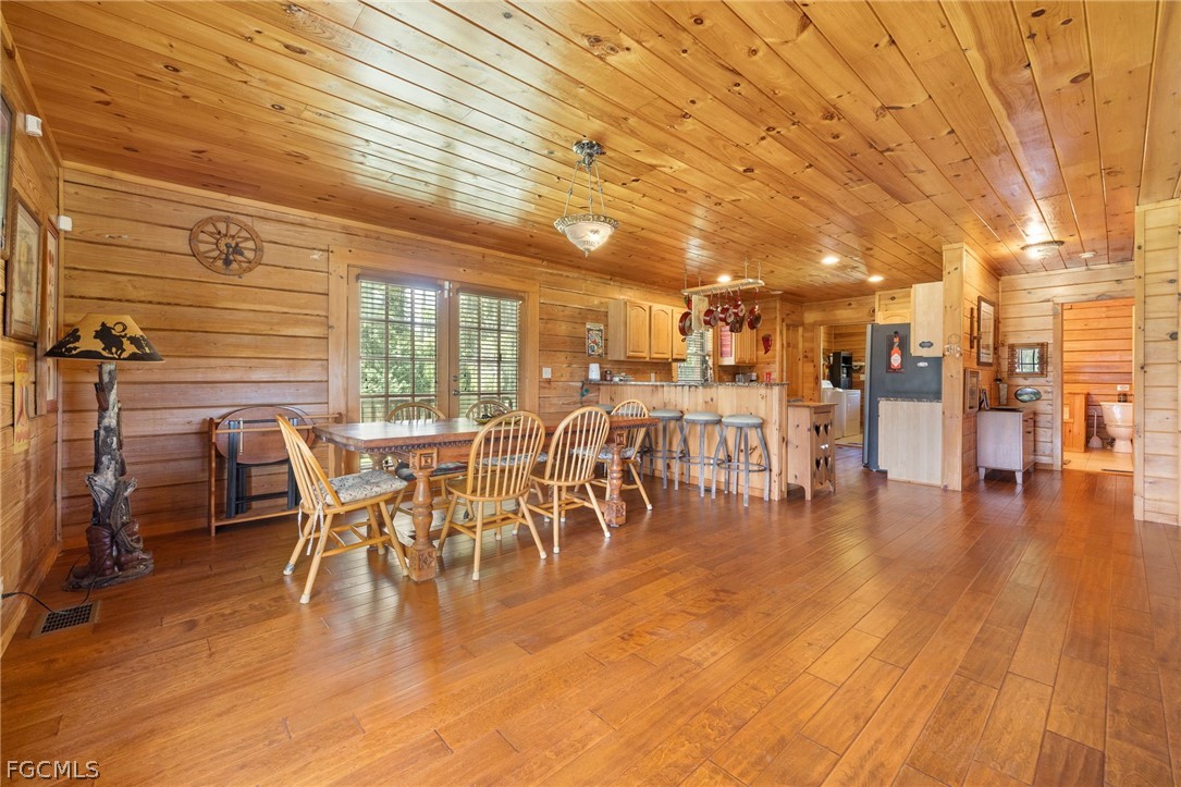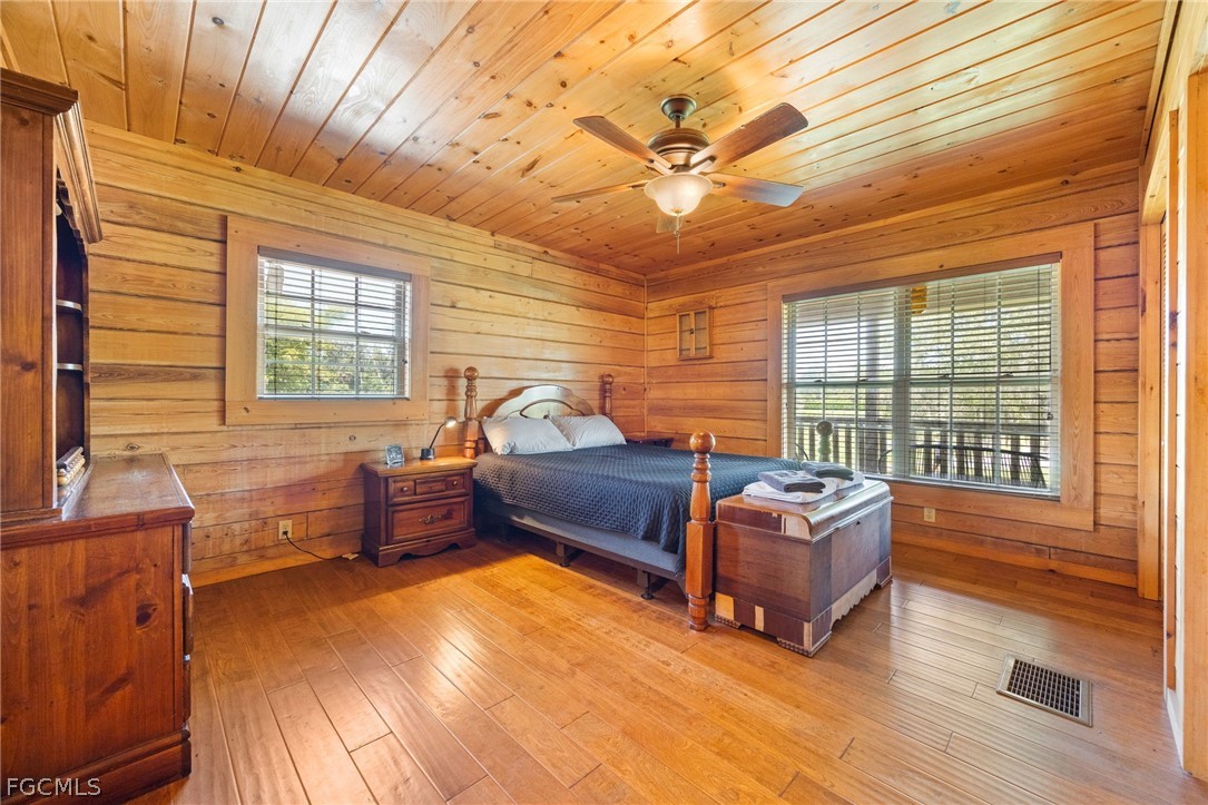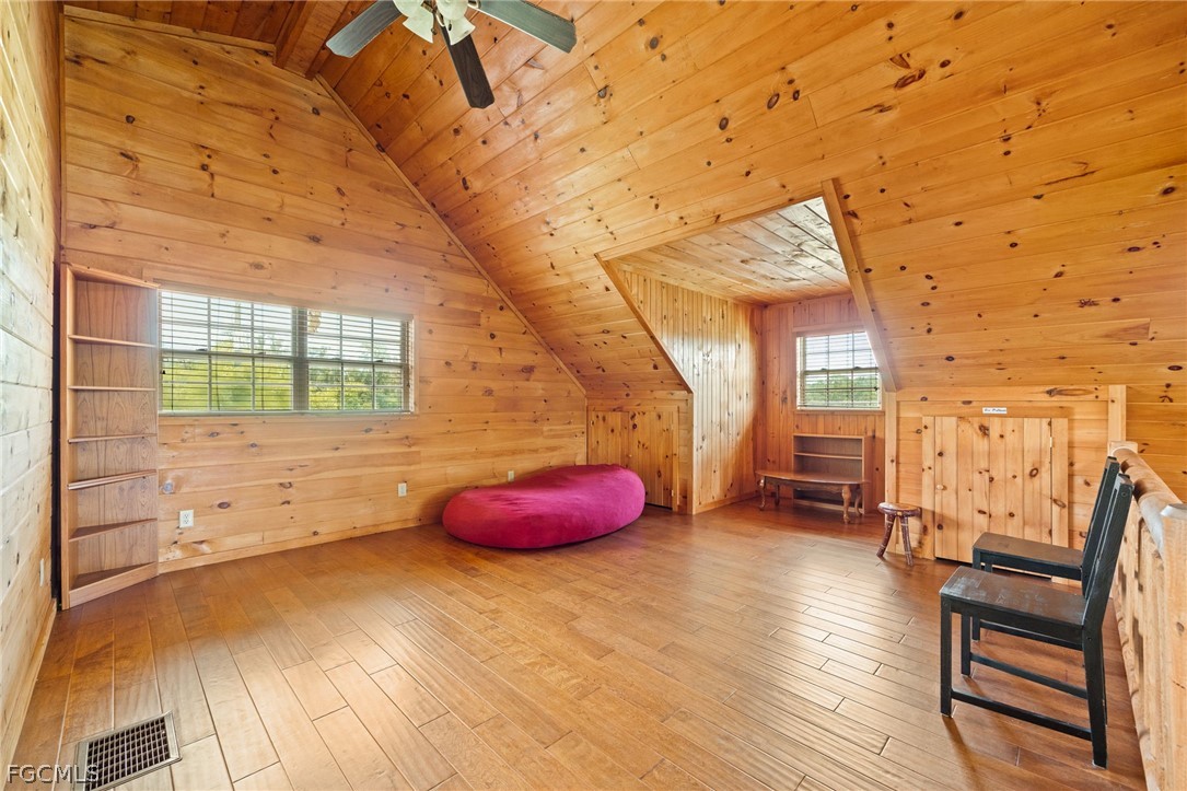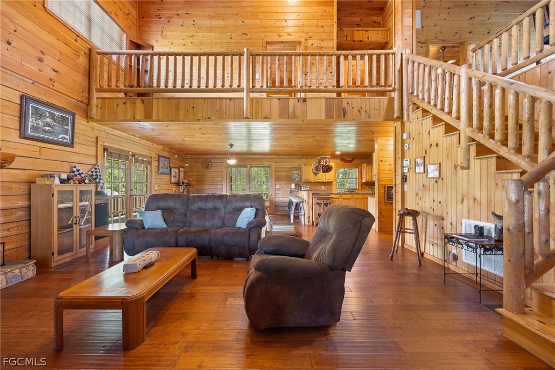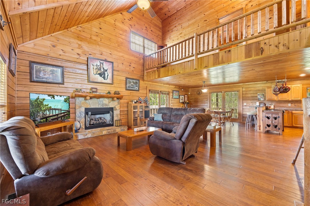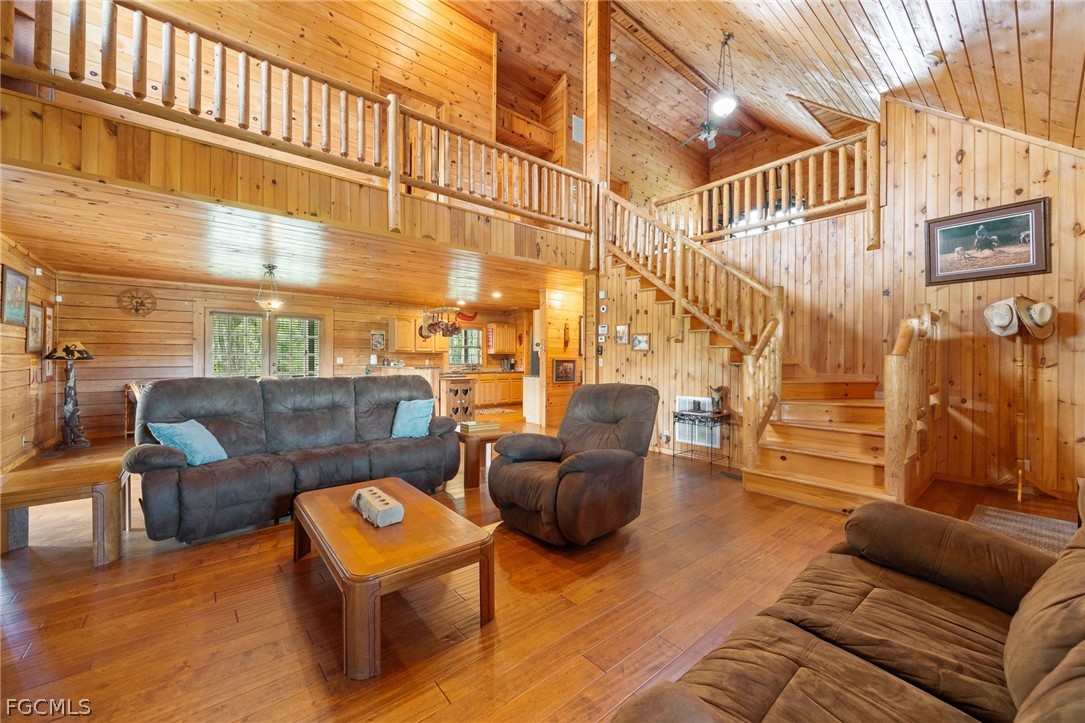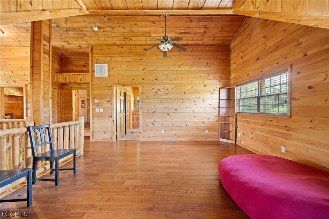Tucked among mature trees in the heart of Montura Ranches, this unique 2,200 sq ft Red Cypress cabin blends rustic character with modern practicality on 2.5 fully fenced acres. Built of Red Cypress —this home is designed for lasting beauty and low maintenance. Inside, you’ll find rich woodwork throughout that brings warmth and authenticity to the living spaces. The fireplace in the living room and wrap around decks are so inviting. The primary suite is conveniently located downstairs, while two guest bedrooms sit upstairs along with a large loft area—perfect for an office, studio, or media space. Outside, the acreage is ready for your lifestyle with a large utility shed and a chicken coop/cage, plus plenty of room for gardens, animals, and outdoor toys.