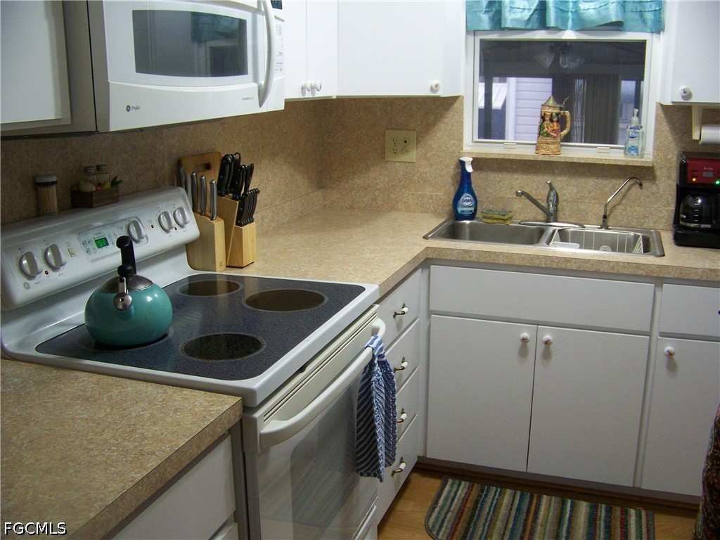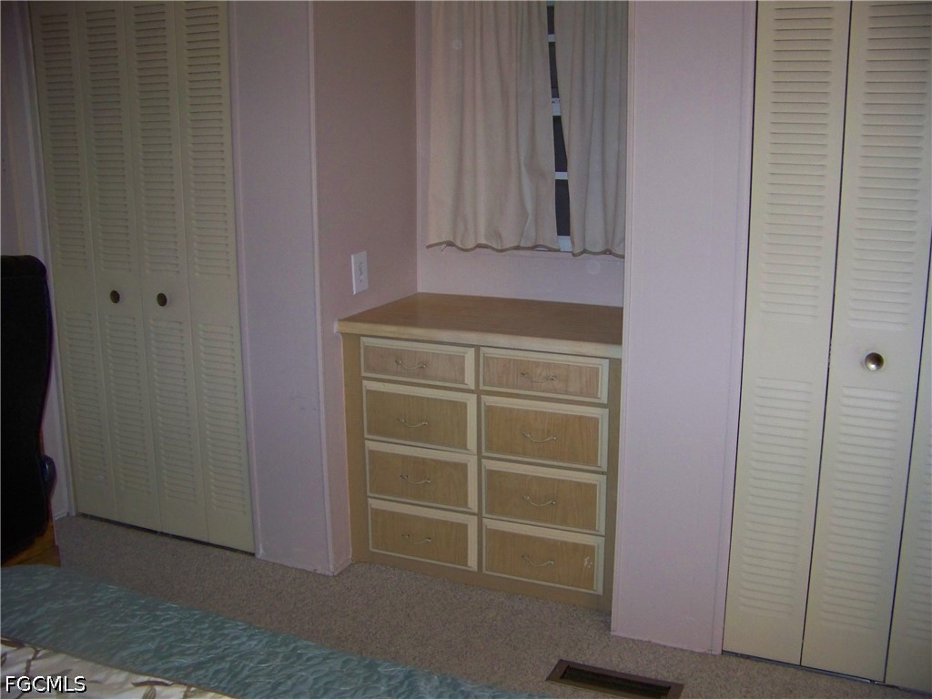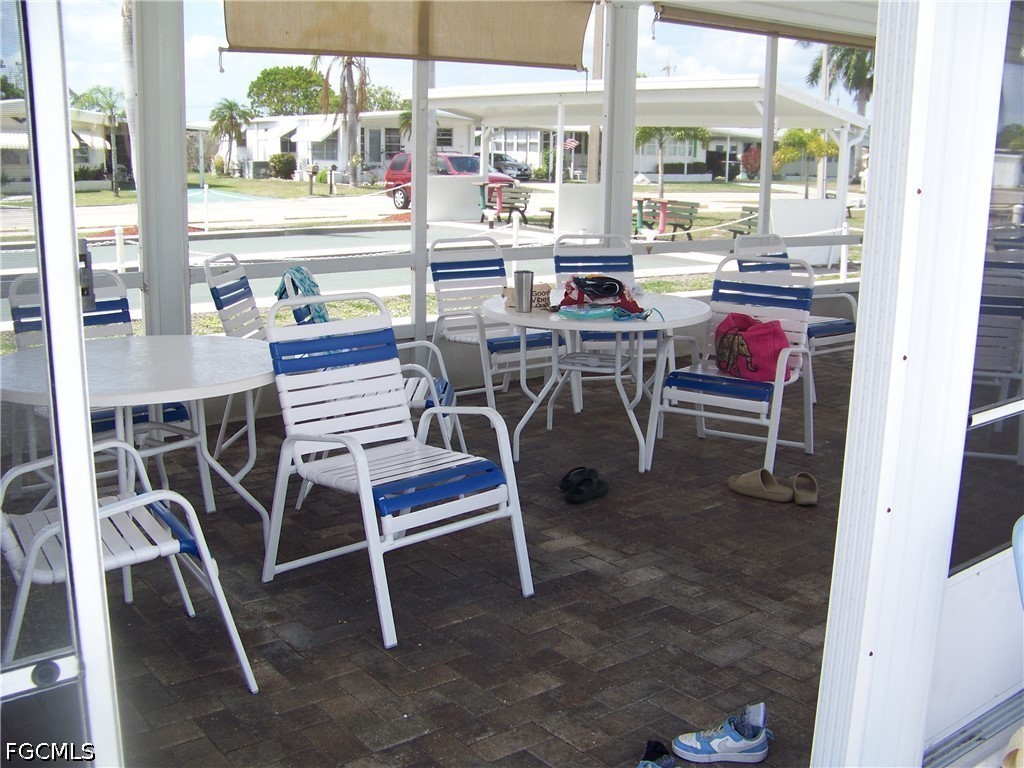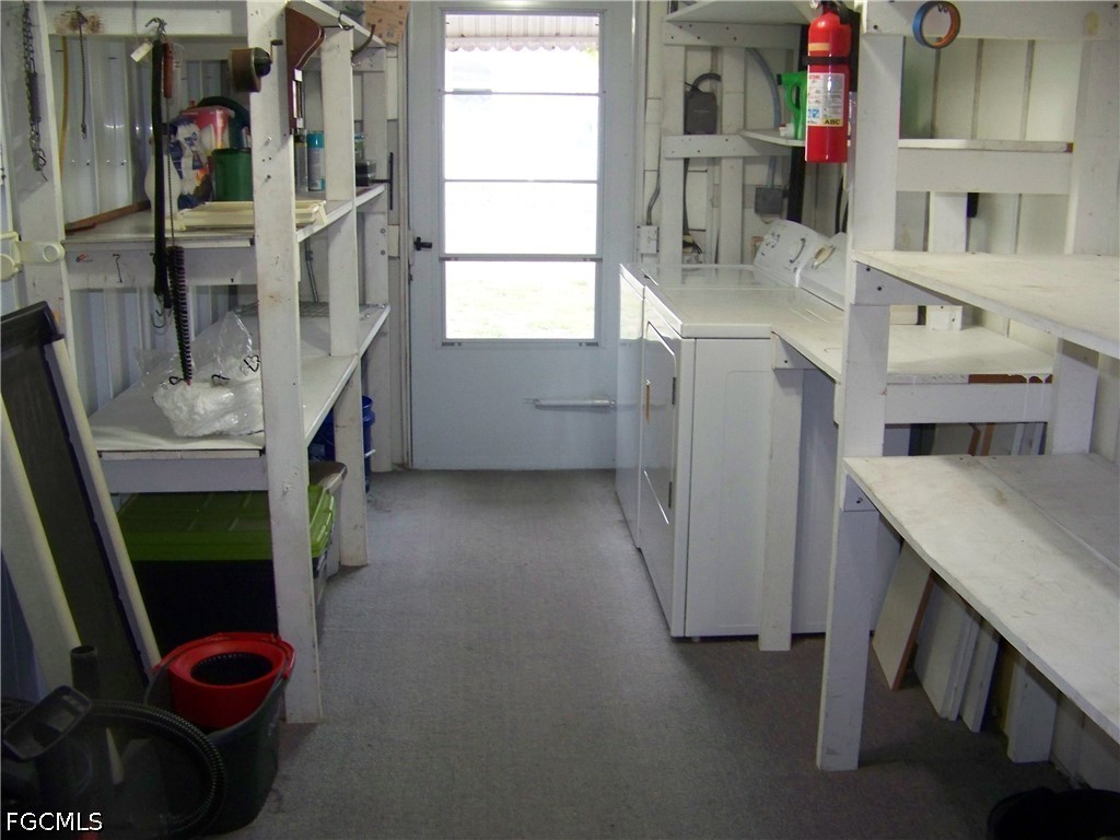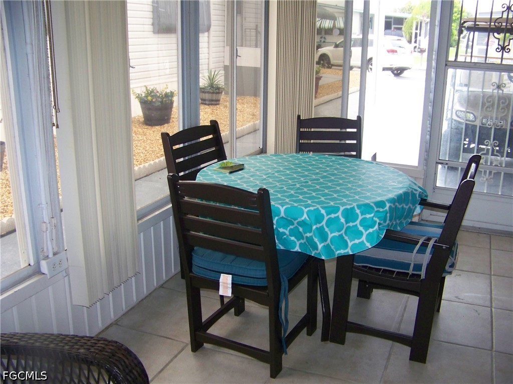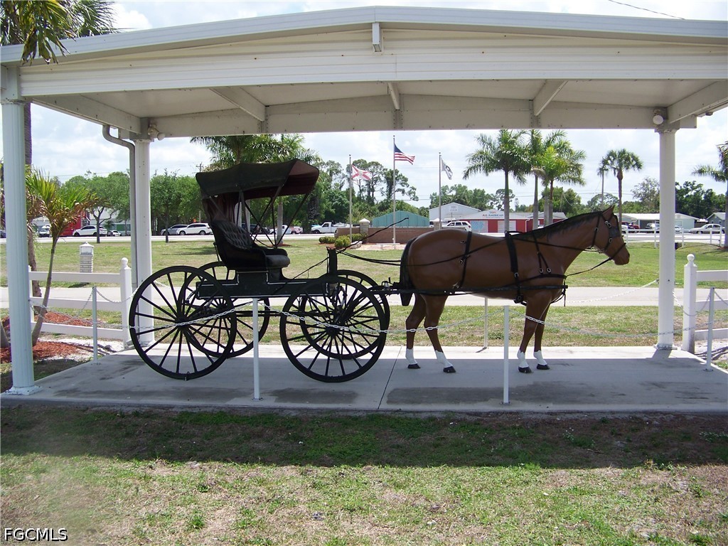 Welcome to Carriage Village, a sociable community where YOU OWN YOUR LAND, the residents are very friendly, you can bring your "fur" babies & have FUN with all the amenities they have to offer! Come take a look at this spacious, well-maintained home that comes furnished/turnkey. The tiled front Florida room is very large & has tons of windows that lets the natural light in, an exterior door to carport & 2 sets of interior sliders. Living room is also quite large with LVP flooring & more windows! The centrally located kitchen is equipped with well-kept appliances, neutral-colored counters w/matching backsplash, all white cabs/drawers' w/deco hardware, pantry with pull-outs, an exterior door to large lanai & more. Both bedrooms are great size with numerous closets & guest bedroom has built in drawers & even a small BONUS room for whatever you want!!! Both baths have showers ONLY with glass enclosures, NO TUBS IN THIS HOME TO CLEAN!!! Master bath has comfort height single vanity sink & more but you will have to see for yourself how wonderful this home really is!!! The exterior has a multitude of extra items: Tiled all weather lanai with extra hurricane braces & all new tasteful furniture, HUGE laundry(washer 2025) & workshop area with shelving, a double door shed connected to the home w/window, a patio, auto sprinklers on well (sold as-is, Seller never used), downspouts & gutters, critter screening on solid brick skirting, nice long walk-way on side of home. Roof was inspected & in great condition. In 2023 shed, laundry, lanai & carport roofs were replaced thanks to Hurricane Ian. Vapor barrier good as of 2023. Newer windows throughout. A/C maintained regularly & working COLD! NO POPCORN CEILINGS!! Easy drop-down hurricane shutters when needed. And an absolute MUST HAVE .... Did I say there is a TON of CLOSETS in this home!!!!!!Check it out, it won't last long, you'll be so glad you did!