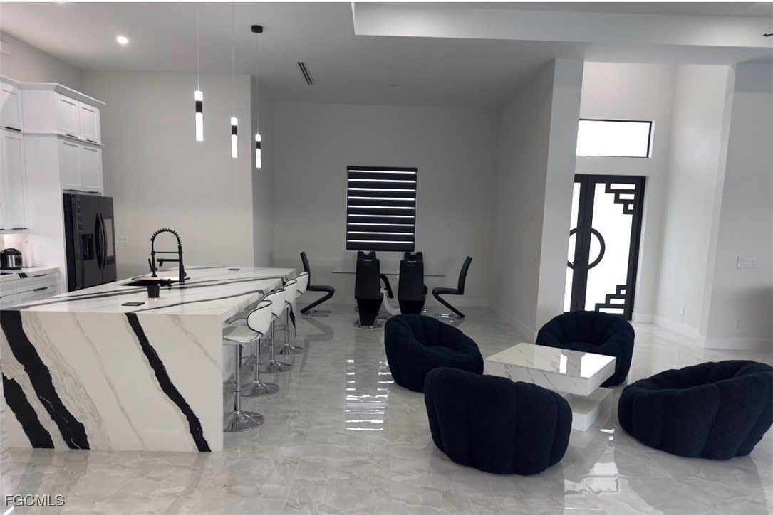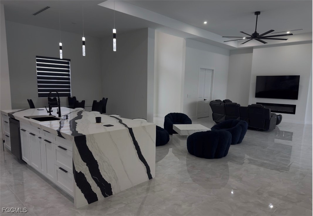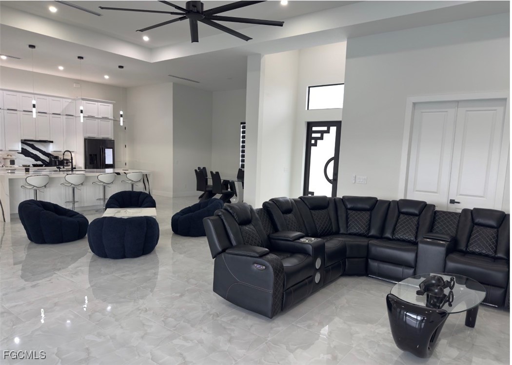 Welcome to your exquisite dream home in Cape Coral. This remarkable single-family residence offers 4 bedrooms, 3 bathrooms, and an array of upscale features that combine comfort, style, and sophistication. Upon entry, you are welcomed into a spacious living area adorned with elegant tile flooring, complemented by a chef-inspired kitchen outfitted with top-of-the-line stainless steel appliances. Designed for both relaxation and entertaining, this home includes two A/C units, an in-ground pool with a spa, and a fully equipped outdoor kitchen. The impact-resistant windows and doors offer peace of mind during storm season, while the three-car garage, along with dedicated RV parking, ensures ample space for all your vehicles and toys. The master suite serves as a private retreat, featuring dual vanities, a walk-in closet, and a spa-like bathroom with multiple showerheads and a separate soaking tub. Completing the luxurious experience, the infinity pool presents sweeping views of the meticulously landscaped backyard. This home exemplifies the highest standards of luxury living and is the perfect sanctuary for those who appreciate unparalleled quality and craftsmanship. Don’t miss the opportunity to make this extraordinary residence your forever home.
