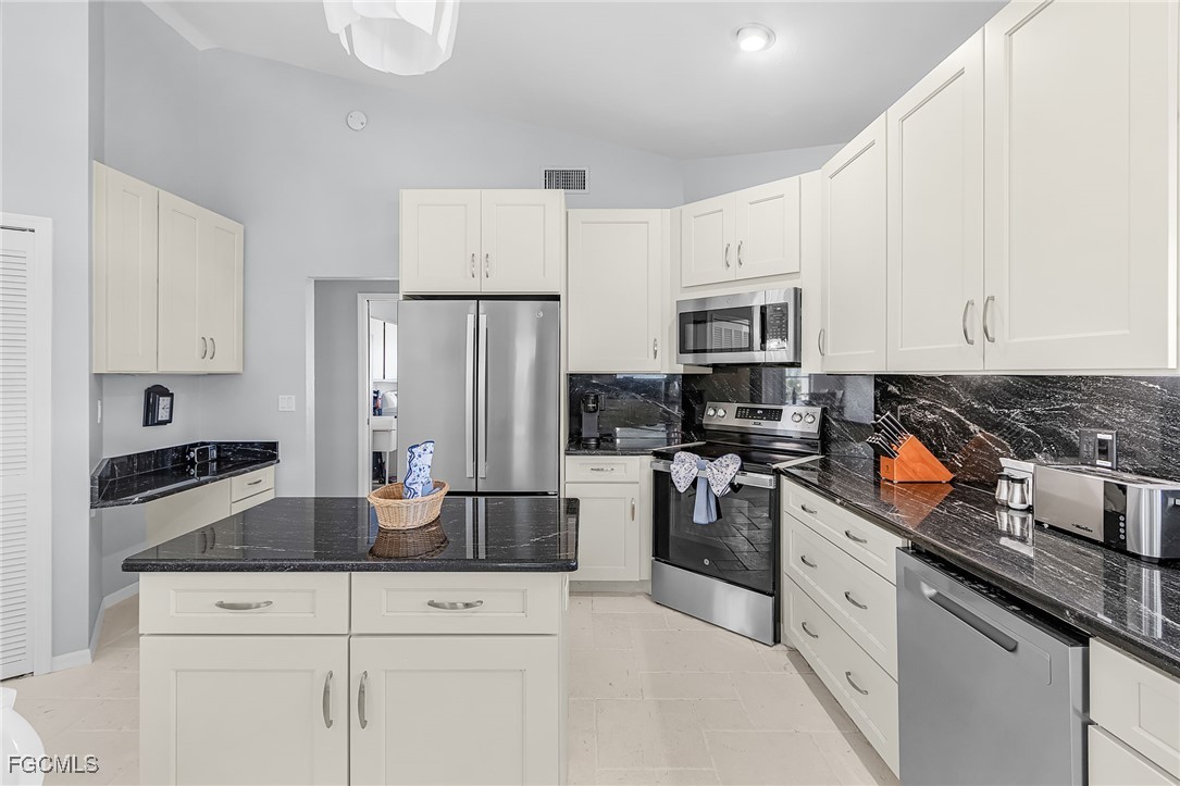Kitchen: The fully equipped kitchen offers anything you could need, featuring an island, granite countertops, dinette table & chairs and stainless-steel appliances.