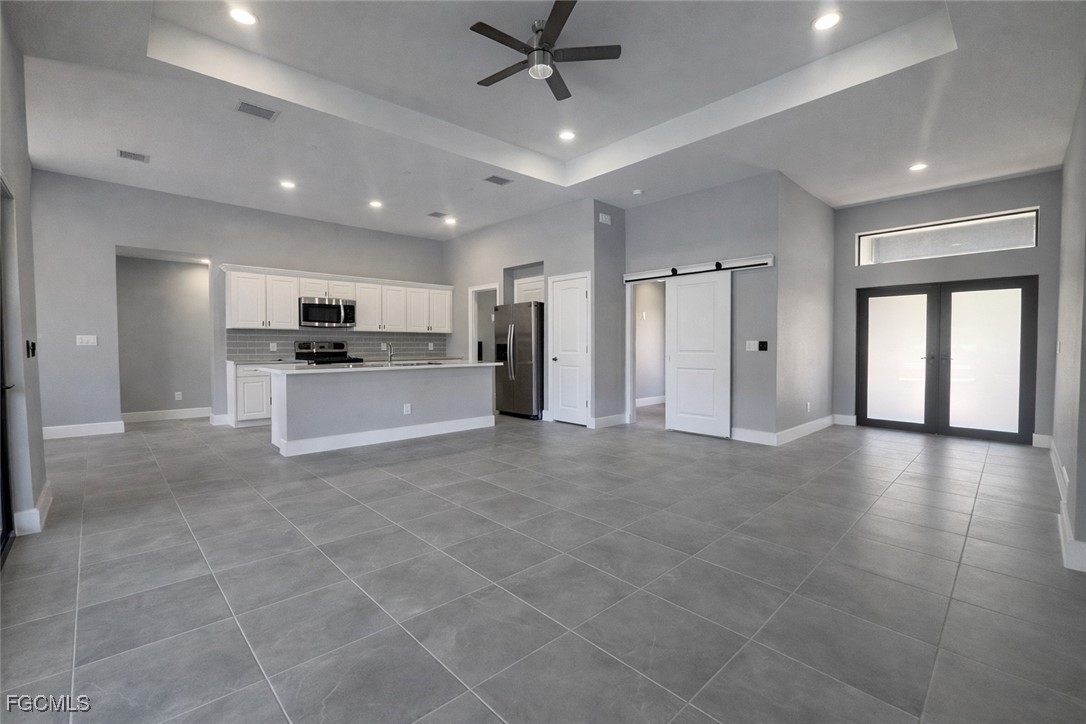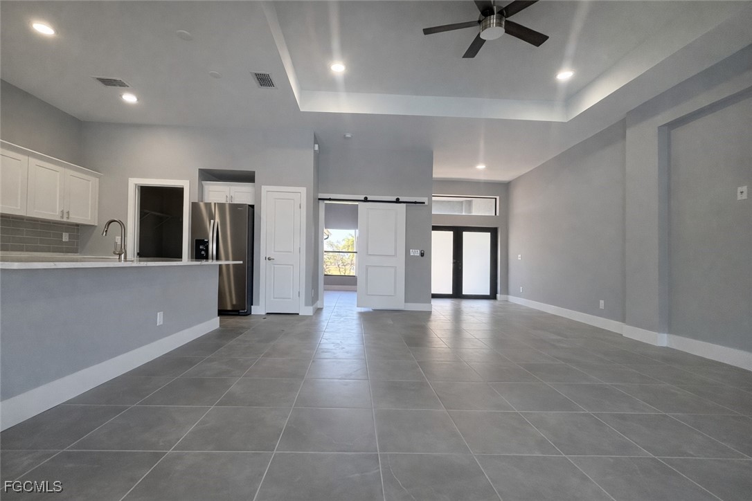 Inside, the home feels grand and open with soaring 16-foot ceilings, sleek modern tile flooring throughout, and oversized patio doors that flood the space with natural light. Every detail was thoughtfully designed to create an airy, upscale atmosphere perfect for both relaxing and entertaining.