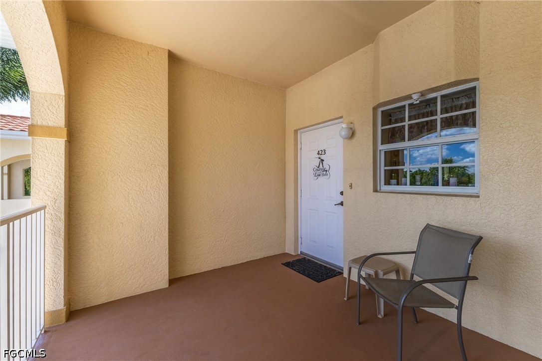Welcome to Unit 423 at 950 Hancock Creek S—an inviting second-floor condo offering the perfect blend of comfort and Florida charm. This well-maintained 2-bedroom, 2-bathroom unit comes completely furnished, making it truly move-in ready or ideal as a seasonal getaway.Step inside to find a bright and functional layout, complemented by tasteful coastal décor that captures the essence of Southwest Florida living. The home features a newer A/C and water heater, giving you peace of mind, along with the convenience of an in-unit washer and dryer. Enjoy your morning coffee or unwind in the evening while taking in a subtle, peaceful view of the neighboring pond from your private space.Located in a quiet, well-kept community just minutes from shopping, dining, and everyday conveniences, this condo offers both relaxation and accessibility.
