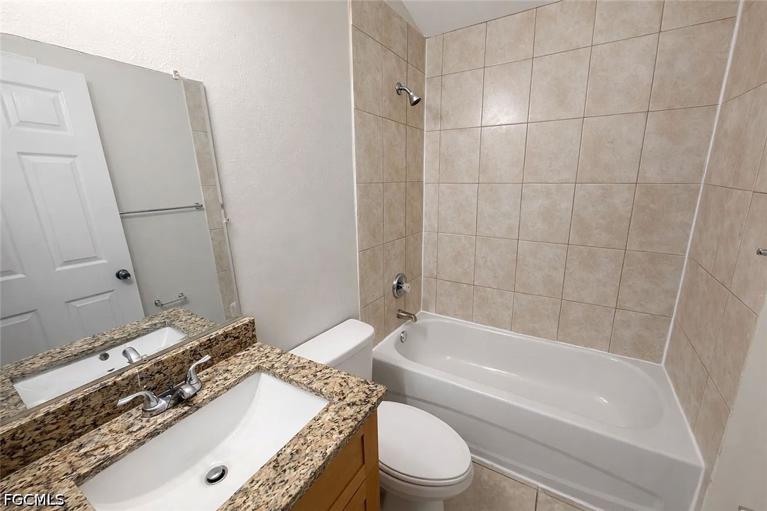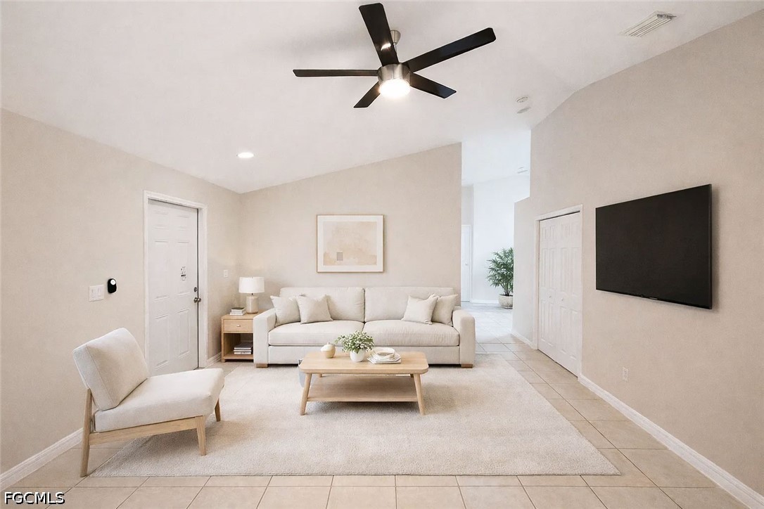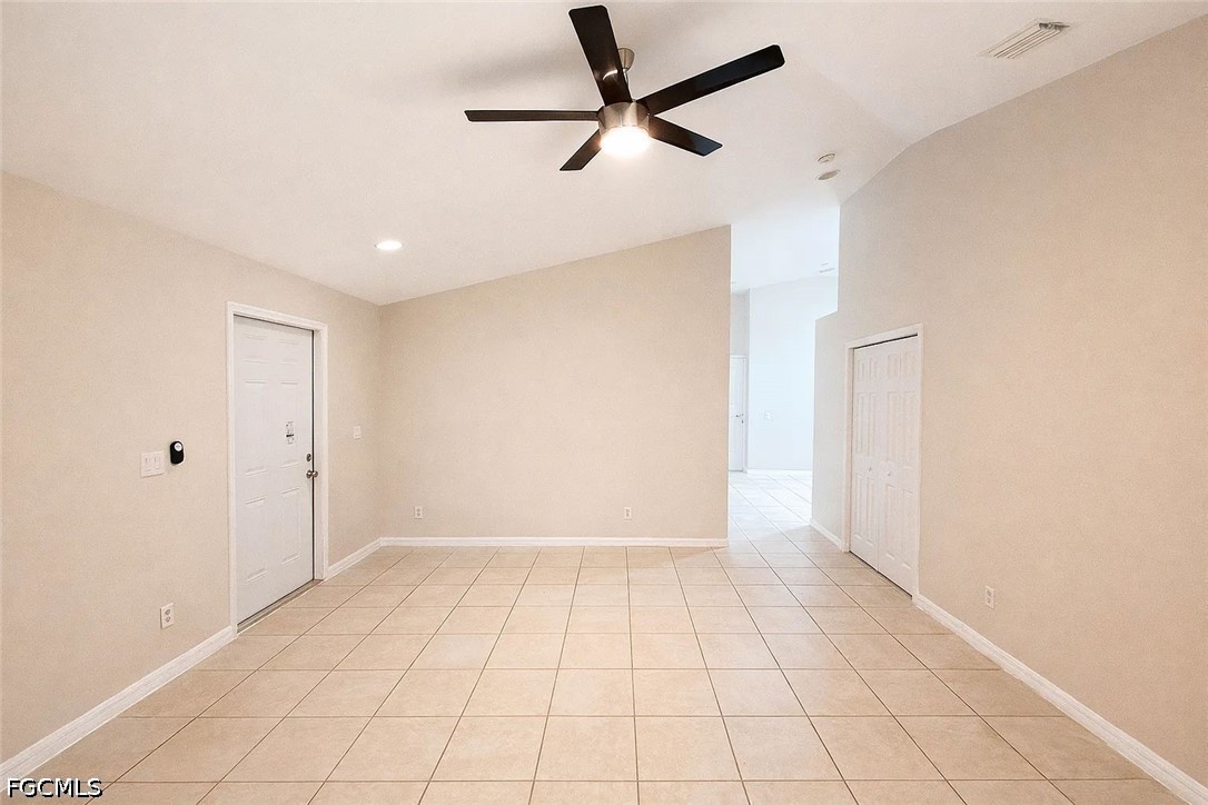 Spacious 3-bedroom, 2-bath 1 car garage, 1199 sq. ft. duplex (side A) offers an open and airy layout with vaulted ceilings and tile flooring throughout the main living areas. The large living and dining space flows seamlessly into the kitchen, creating a comfortable layout ideal for everyday living. The kitchen features ample cabinet space, granite countertops, and a functional layout with plenty of room for cooking and storage. Natural light fills the home, enhancing the clean and bright interior. Both bathrooms include granite vanity tops and modern finishes, while the bedrooms provide comfortable space with a practical layout. Additional features include a one-car garage, private driveway, and a quiet Lehigh Acres location with easy access to local shopping, dining, and major roadways. A great opportunity for comfortable and convenient living.