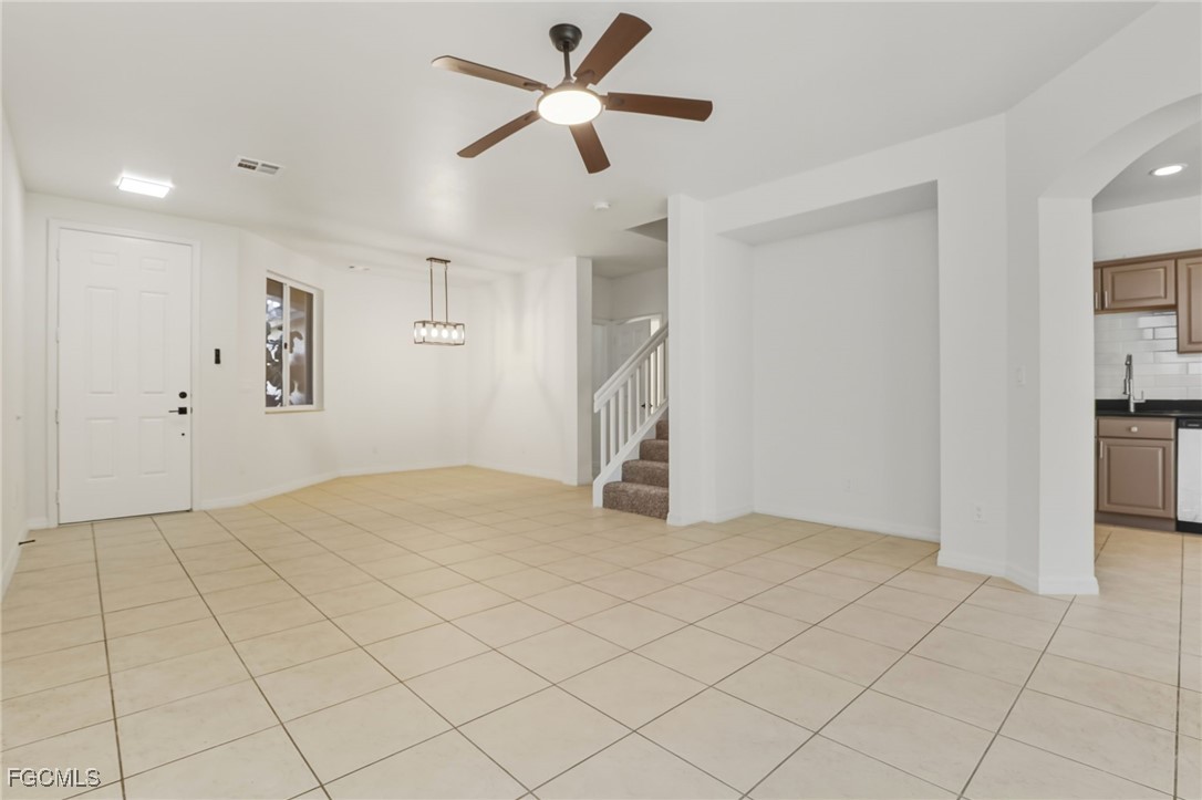 Welcome to your Dream Townhouse in a gated community, conveniently located in the vibrant heart of Fort Myers, FL. This well maintained 3 bedroom plus den, 2.5 bathroom residence offers a perfect blend of modern comfort and serene living, nestled within a gated friendly and well maintained neighborhood. On the first level you have an well designed and floor plan that connects the dining room, living room, Kitchen, 1/2 bathroom, Laundry room, garage, and a screened lanai area! The kitchen features granite countertops and a spacious walk-in pantry. Upstairs you have an open den/loft area, A spacious Primary bedroom with 2 large closets, Primary bathroom with dual sinks, soaking tub and shower. Also upstairs there are 2 additional bedrooms and the 2nd full bath. Flooring in the home consists of tile on the first Level and wood floors on the stairs and the second level. Community amenities include a pool, clubhouse, fitness center, playground. Reasonable HOA fees cover Cable & Internet, trash pickup, street lights, pet friendly community. Located just minutes to shopping, restaurants, Hertz Arena, FGCU, RSW airport, and the beautiful beaches of SWFL. NOT IN A FLOOD ZONE!!