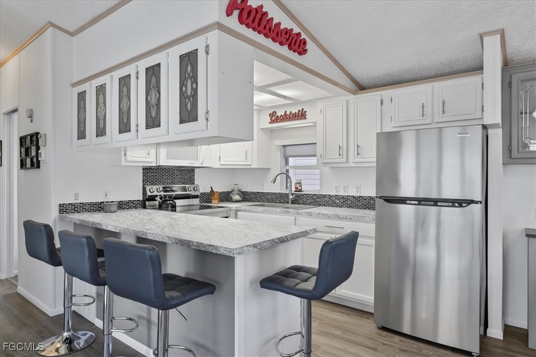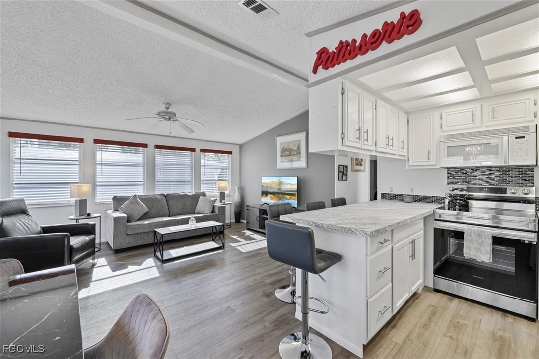 Beautifully updated and move-in ready! This charming 2-bedroom, 2-bath manufactured home where you own the land, offers modern comfort and coastal convenience in a friendly gated 55+ community just minutes from Fort Myers Beach, several 18-hole golf courses and Sanibel Island. The bright, open floor plan features new flooring, fresh pain, and a stunning kitchen.
