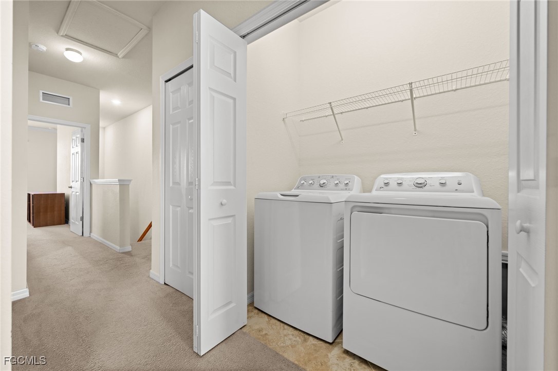 Welcome to Marbella! This well-maintained townhome impresses with a beautiful and sweeping view of the sparkling lake that catches your attention the moment you enter. Offering almost 2,000 square feet of living space, this 3-bedroom, 2.5-bathroom Fort Myers home is an incredible value. The spacious layout features the kitchen, dining and living room on the first floor, with bedrooms and laundry on the second floor. You'll enjoy a kitchen comprised of granite countertops, stainless-steel appliances, bar seating and pantry, connected to a flexible dining and living room that overlooks the screened lanai. Upstairs, the primary bedroom includes a desk/TV nook, two walk-in closets and en-suite bathroom with dual sinks and tiled shower. Down the hall, two additional bedrooms (one with a walk-in closet) share a full bathroom, while an in-unit washer and dryer add extra convenience. Additional features include R/O system in the kitchen (both for the sink and refrigerator), attached 1-car garage, and ample storage throughout. Life at Marbella on Cypress blends comfort and convenience. Spend your weekends lounging by the community pool, getting in a quick workout, or relaxing in the hot tub or sauna. Take a short bike ride to the Six Mile Cypress Preserve to spot wildlife among the trees. In the evenings, step out to your lanai and watch the sunset reflect across the lake and fountain just beyond your sliding doors. When you need to run errands or grab dinner, Publix, Whole Foods, Target, and Topgolf are only minutes away. Everything you need is close, so you can spend more time enjoying where you live. Building is scheduled to be painted in January 2026, providing a refreshed look and added curb appeal for years to come!
