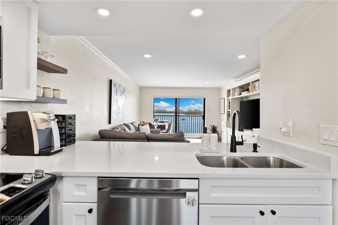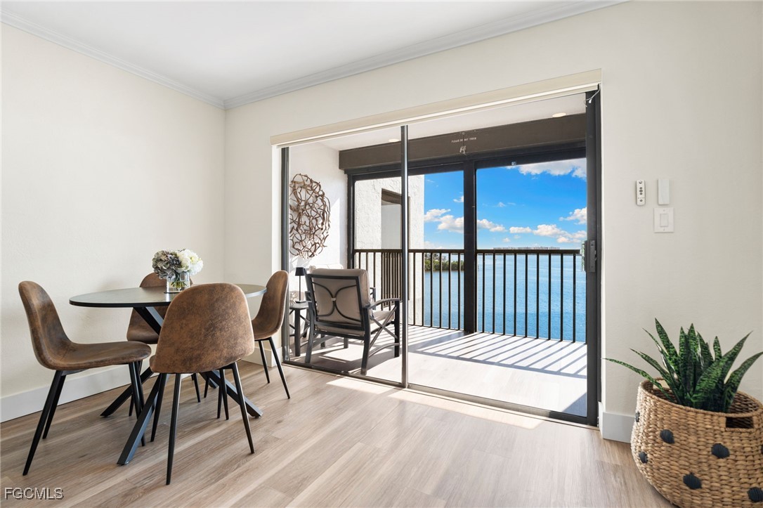 Welcome to Little Hickory Bay, where coastal living meets modern luxury at 4835 Bonita Beach Road #409. Completely renovated in 2022, this beautifully appointed 2-bedroom, 2-bath condo features soothing tones, clean lines, and upscale finishes throughout the unit. The open kitchen offers stainless steel appliances, quartz countertops, floating shelves, sleek cabinetry, and is seamlessly connected to the living and dining areas for easy entertaining. The private lanai offers a stunning 4th-floor Bay view framed by impact-resistant glass, offering both beauty and security. Other features include crown molding, recessed lighting, a wine cooler, closet systems in both bedrooms, electronic window blinds, shaker doors, and electronic metal shutters. Every detail has been thoughtfully updated—from the contemporary bathrooms to the vinyl flooring and elegant furnishings that perfectly complement the relaxed beach aesthetic. Just a short stroll to Bonita Beach, this property blends style, comfort, and convenience, with resort-style amenities including a waterfront pool, boat docks, kayak launch, pickleball and tennis courts, and a fishing pier. Whether you’re looking for a year-round residence or a turnkey vacation retreat, this upgraded coastal gem captures the best of Southwest Florida living. Schedule your showing today!