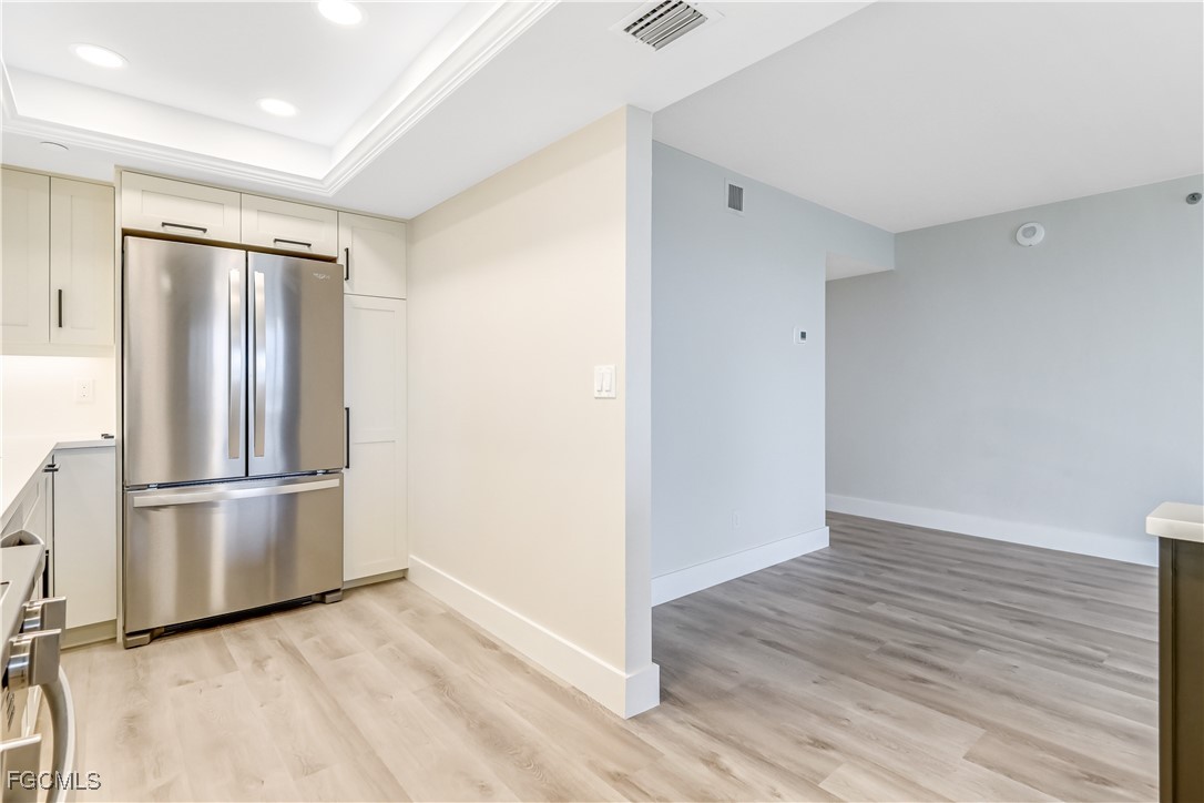 All-new impact glass windows and sliders frame wide views over the mangrove preserve and Estero Bay, filling the home with natural light. Custom solid-core doors, upgraded trim, and fresh designer finishes give the residence a clean, cohesive feel throughout. Luxury vinyl plank flooring adds durability and warmth, complementing the neutral, coastal palette.