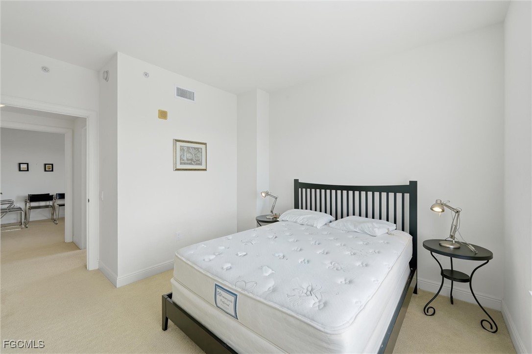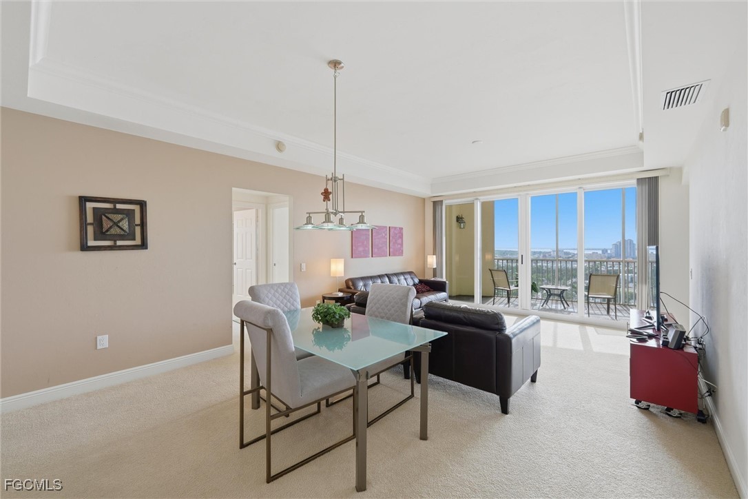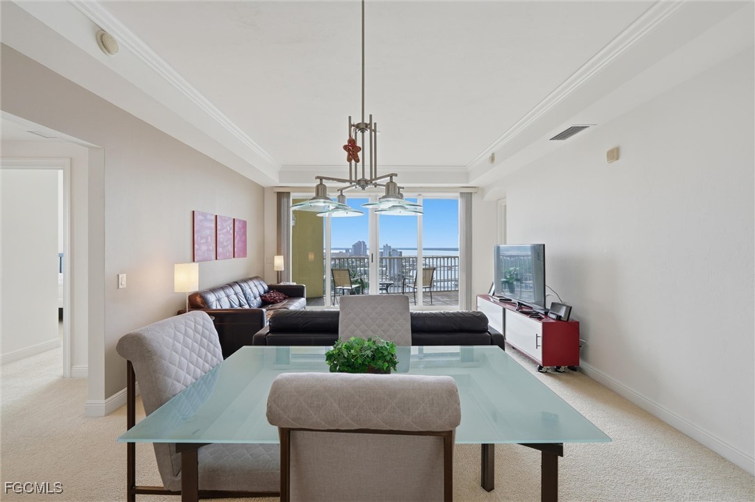 Million dollar view! Overlooking the river, bridges and downtown Fort Myers River District from this 22nd floor FURNISHED condominium in the beautiful waterfront Riviera. Do not miss the best floor plan with absolutely unrestricted private water views from every room! This is the perfect place for a tropical getaway! Features a direct access secured elevator from the garage to your front door. This open layout is the best on property for the gorgeous natural lighting coming in from the floor-to-ceiling/wall-to-wall sliding glass balcony door. All 3 bedrooms have a gorgeous view of the river. Enjoy our tropical days under the palm trees by the infinity edge pool and glass wall river view, or soak in the heated spa to relax and watch the sunset over the city and river. In the heart of the downtown Fort Myers river district where amazing nightlife, fine dining and shopping await.