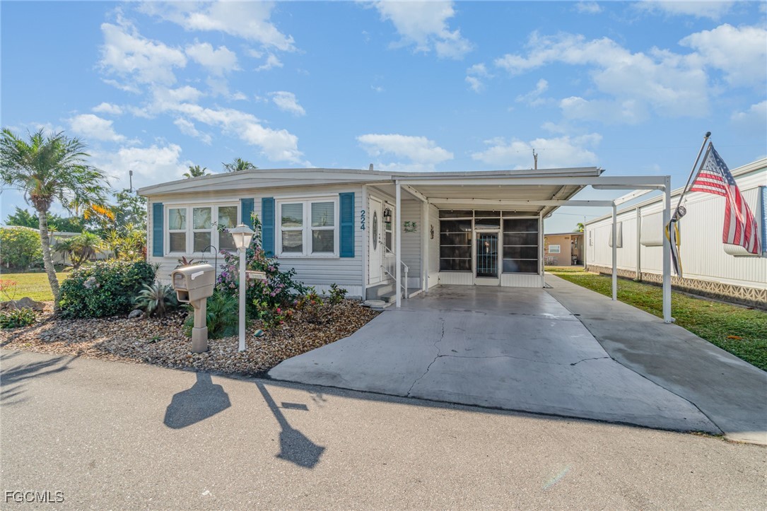 Beautifully Updated Home in the Highly Desired OLD BRIDGE VILLAGE CO-OP! Enjoy numerous upgrades throughout, plus the added value of a SHAREHOLDER INTEREST that is transferrable to the new owner. • Beautiful curb appeal with fresh landscaping and a spacious carport welcomes you home. • Inside, the home is meticulously maintained and beautifully decorated. Features include new flooring, ceramic tile backsplash, new appliances, new HVAC, and an enclosed lanai/porch offering extra living space to relax or entertain. • Located in the sought-after Old Bridge Village Co-Op (OBV), a resident-owned, 55+ Gulf Access community in North Fort Myers offering resort-style living with an exceptional list of amenities. OBV features an 81-slip marina, boat & kayak launch, and a 24/7 guarded gate for added security and peace of mind. • Spend your days at the five-acre waterfront park along the Caloosahatchee River, complete with grilling stations and a fishing pier—perfect for sunsets, picnics, and enjoying Florida’s natural beauty. • There are TWO active clubs: