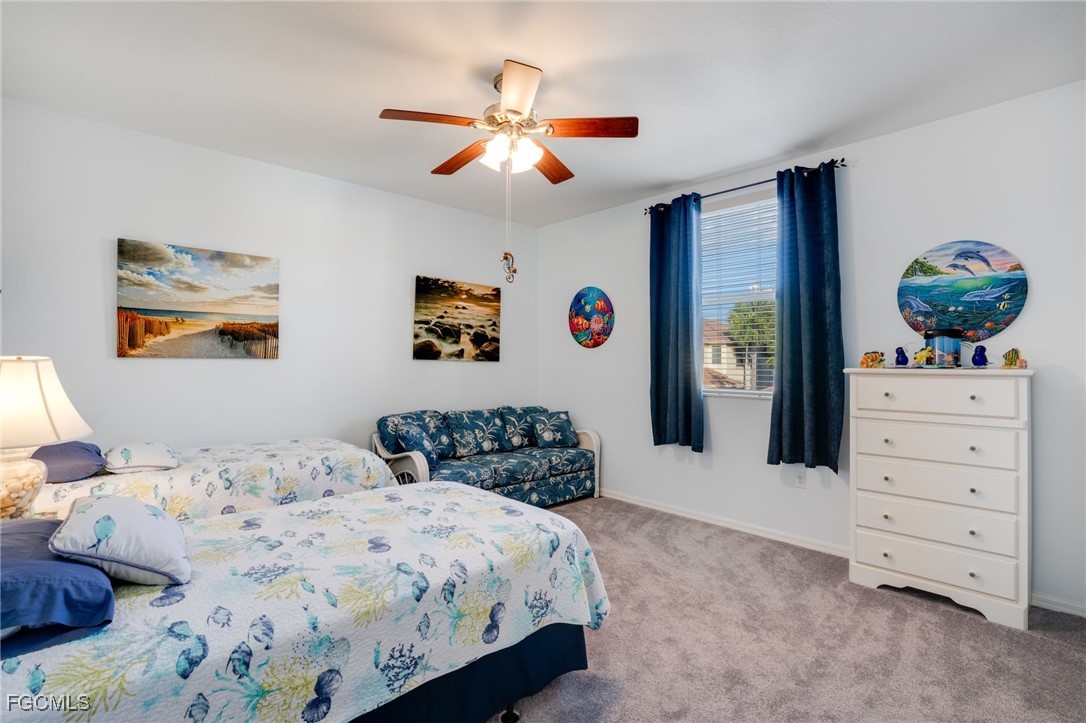 Fully Furnished Townhome in gated community. Welcome to this beautifully maintained seasonal townhome offering 3 bedrooms 2 bath and a single car garage located just minutes to the beach. Bellamar is a pet friendly community and owners are allowed to rent their units 12 times a year with 30 day minimum, making it a great seasonal or investment property. Step inside this 2nd story townhome with tile throughout main living area & primary bedroom with carpet in the guest bedrooms. The kitchen has white shaker cabinets with mosaic tile backsplash plenty of counter space and breakfast bar for your morning coffee. Other features include Custom window treatment, enclosed porch/sunroom, large pantry with full size washer & dryer. Newer metal roof ensuring long term durability and peace of mind. Residents and guest can enjoy amenities such as a community pool, fitness center, 24/7 patrolled security, all surround by lush landscaping and well maintained grounds. Close proximity to shopping, dining, and just a short drive to the best coastal beaches sw florida has to offer. Whether you're seeking low-maintenance or a ready-to-go rental opportunity, this checks all the boxes. Don't miss your chance to grab one of the best values in South Fort Myers for under 300k!