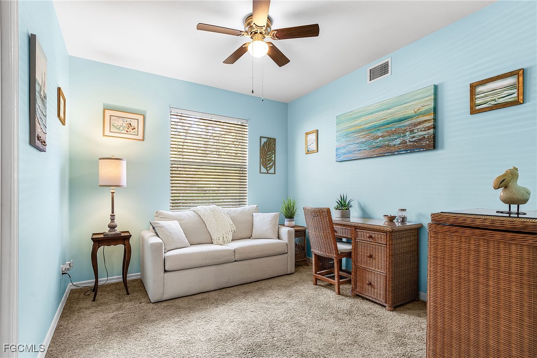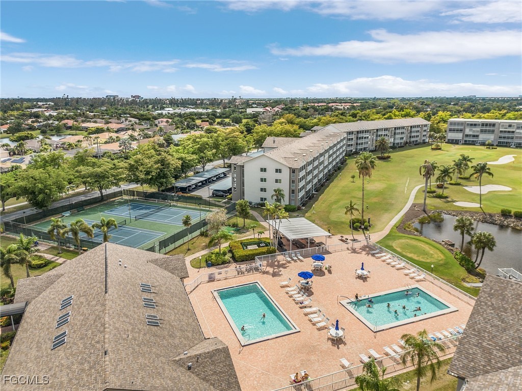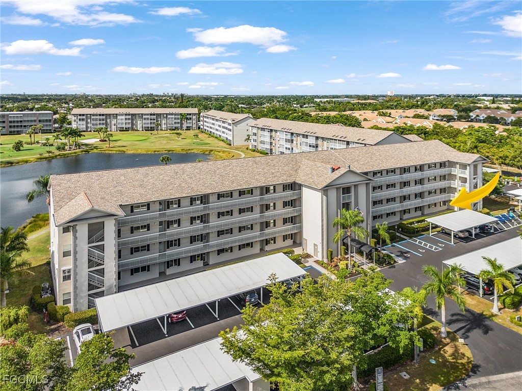 FINALLY! A 1st FLOOR END/CORNER UNIT w/2BEDROOMS and A DEN in TURNBERRY @ GOLFVIEW. This gem lives like it has its own pool. It's conveniently located with quick access and a landscaped view of the satellite pool. AND the covered parking space it only steps from the front door. The Turnberry Pool is one of the 3 on-site pools at Golfview Golf & Racquet Club. GGRC is the sweet secret of south Fort Myers. It's a BUNDLED golf community w/o any additional greens or tee fees boasting a fun but challenging Par 3 / 9 Hole course. Reasonable monthly fees include all the GOLF you want to play, fibre optic cable/internet/wifi supplied by HOTWIRE/FISION, flood insurance, water, sewer, lawn & land & course maintenance; on-site management, reserves, pest control and more! This property is being offered TURNKEY (minus some personal effects). Other amenities include LIGHTED tennis & pickleball courts; shuffleboard & bocce courts, 3 pools, driving cage, putting green, and fishing pier! Nearby attractions include Lakes & WaKaHatchee Parks, BB Mann Performing Art Hall, Suncoast CU Arena on the nearby Florida Southwest Campus, Lee County Library, Medical Facilities, Houses of Worship, world-class shopping & dining. Fort Myers Beach, Sanibel & Captiva beaches are just a short drive away. The kitchen has perimeter task lighting and cozy ambient lighting in the cove ceiling, newer refrigerator w/water & ice at the door, newer dishwasher, SS sink and gooseneck faucet, tiled backsplash. Wood-look ceramic tile floors are throughout the kitchen & living areas and there is comfy cozy plush carpeting underfoot in the bedrooms. Soothing colors of the sea and surf surround you in the lovely paint colors and furnishings w/warm wood stains and some lovely painted wood. Master bedroom has a sweet bay window for use as sitting or reading area, or is even large enough for a desk, too. Master Bath has a newer beadboard vanity with top, faucet, mirror and light. Custom mirrors, extra windows, electric hurricane shutters w/remote control, and the DEN make living in this condo feel like PARADISE! HVAC: 2023 This condo is priced under AVM and it is in such good condition there's nothing to do here but ENJOY! Property did not sustain any damage from Hurricanes Ian, Helene or Milton. Be sure to click the video link to enjoy an actual 'walk through' tour of the property!