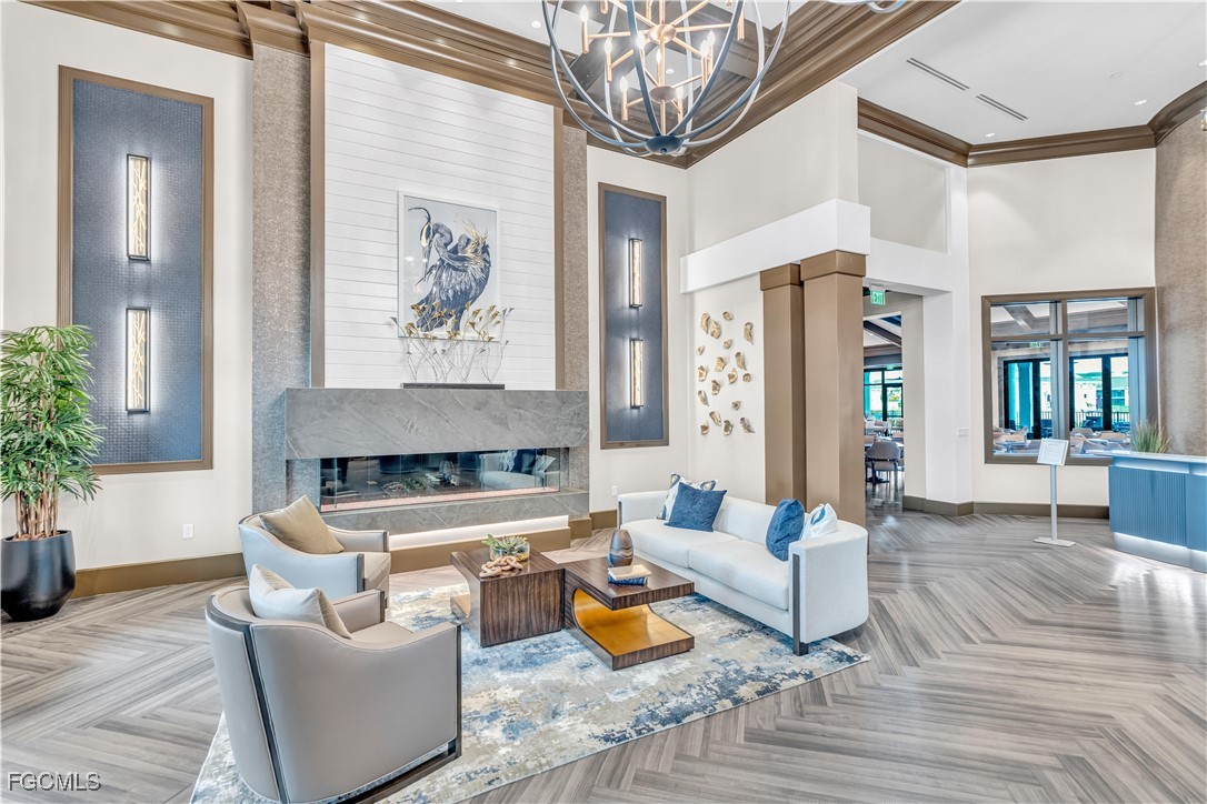 Access to resort-style amenities: (Pickleball & Tennis courts, Resort-style pool with lap lanes & a Spa / Hot Tub, 3 Satellite Pools along with Poolside Tiki bar offering drinks & Light fare, State-of-the-art fitness center, sauna and Day Spa, Gas fireplaces and grill cubicles for entertaining, bocce ball courts & basketball courts)
