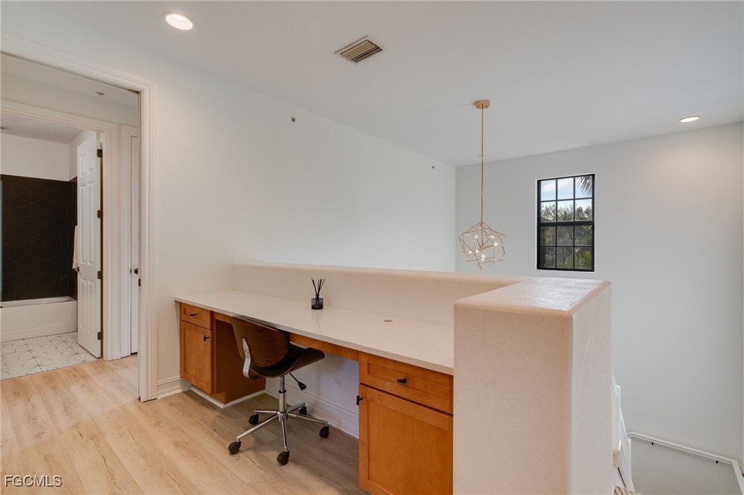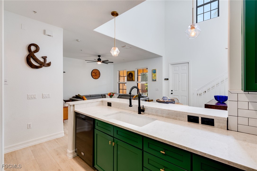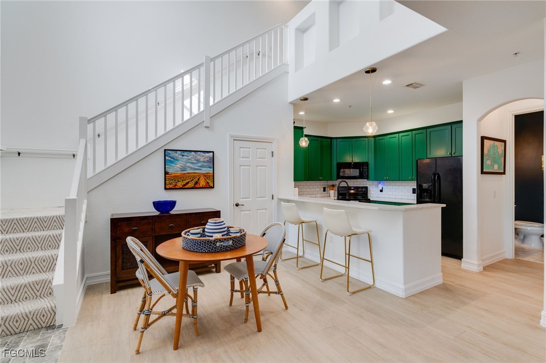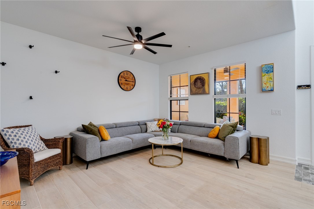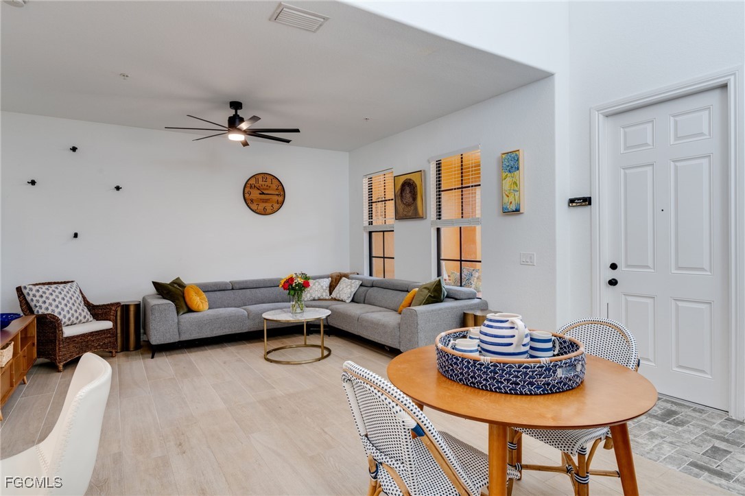 Welcome to Paseo where everyday feels like Friday! This remodeled townhome is located in Quad 1 of this Resort style community where "Living Large" is a lifestyle. The neighborhood towne center offers a Movie Theater, Restaurant, Pub, Bistro, Resort style pool and Tiki Bar, full size Gym, Yoga/Dance studio, Lap pool, Tennis, Pickleball, Basketball courts for those fitness enthusiast and yes there is also Bocce ball. If this isn't exciting enough you will love making friends with all of your neighbors dog in this pet friendly community with miles of sidewalks, lush landscaping and picturesque lakes with several sitting areas to reminds us all its ok to slow down sometime. This remodeled townhome has a brick entry with spacious front screened porch & private 1 car garage entry out back. Entering the home you will find soaring ceilings with wood plank tile throughout the main living area with a fully remodeled half bath. The open kitchen has green shaker cabinets, white subway tile backsplash, quartz countertops and deep kitchen sink. Walk up stairs to the full size laundry room, 2 large bedrooms + den/office space and fully remodeled guest bathroom. The primary bedroom has large walk in closet with plenty of storage. The remodeled primary bath has dual sinks with quartz countertops & walk in shower. You will love living here...Centrally located in Fort myers just a 15 minute drive to SWFL international airport, easy access to I-75 and a 30 minute drive to the beach. Paseo is an award winning community that offers a good diverse of lifestyles making everyday fun for all ages. This is a great opportunity to get into the neighborhood for less than 300k & to make everyday feel like vacation.