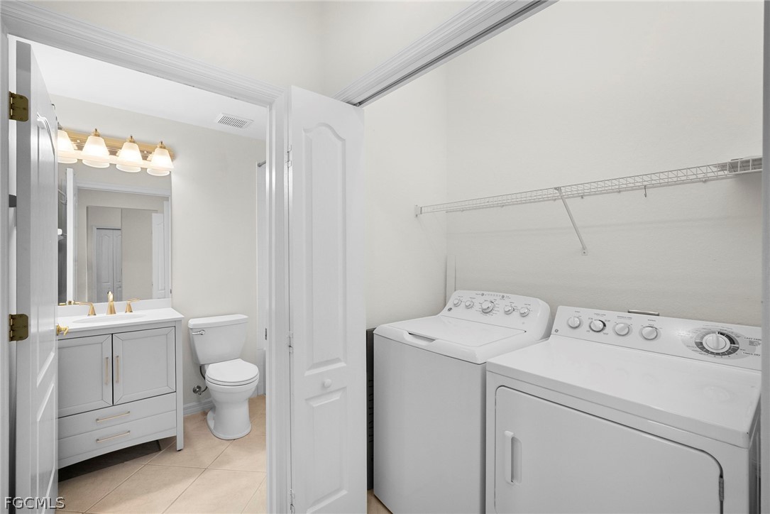 Welcome to this stunning 2-bedroom + DEN , 2-bathroom home located in the beautiful Estero, FL. This property boasts a range of modern amenities that are sure to impress. The home features a sleek, renovated bathroom, high ceilings, and a combination of tile and laminate flooring that adds a touch of elegance to the space.