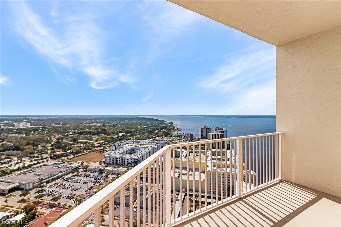 This is IT! Your new home away from home! Whether you are a full-time resident or snowbird, the spectacular soaring river and downtown views welcome you to this lovely 32nd floor High Point Place residence! This spacious end-unit has 2 bedrooms plus den and 2 1/2 baths. Step off the elevator into your own private & secure elevator lobby. You and your guests will spend hours on the screened balcony enjoying the private, ever-changing views of downtown and the Caloosahatchee River. This is a wonderful home for entertaining with a chef-friendly kitchen with stainless appliances, granite counters, and large pantry. The separate dining area for "formal" dining plus breakfast bar for meals on-the-go. Master bedroom with ensuite bath, large walk-in closet and access to the balcony. Guest quarters are separate from the living area for peace and quiet after a busy day in sunny SW FL! Healthy condo association with fully funded reserves. SIRS report completed in May, 2024. Much to do at HPP including Friday night Happy Hours, special social events & parties, water aerobics, fitness center, pool/hot tub. Even more to do downtown: Music Walk, Art Walk, dining, entertainment, shopping! High Point Place is the "Crown Jewel" of the downtown river district. Come see why, then get ready to buy! You are going to love your new condo lifestyle! Welcome home to HPP! Exciting News: The Legacy Harbour Marina next door to HPP, will be re-opening in the 1st quarter of 2026!