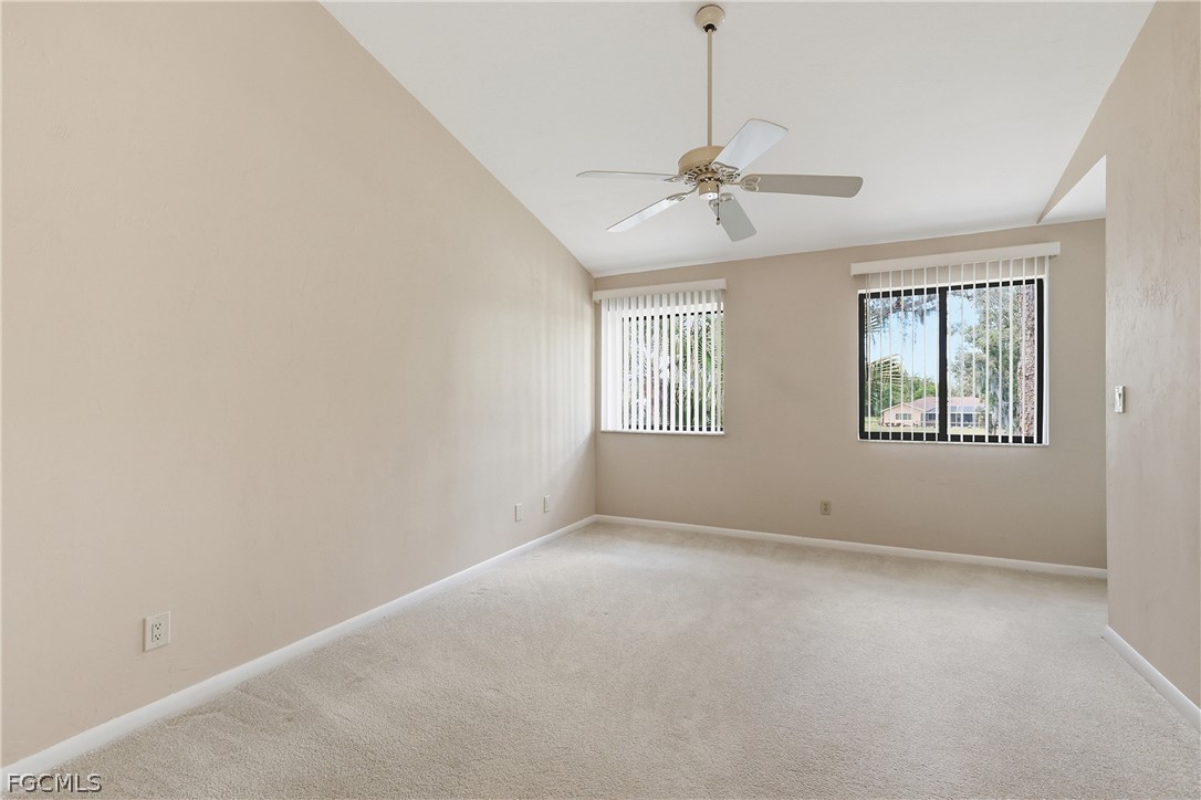 Enjoy breathtaking western sunset views over the lake and golf course from this well-maintained 3-bedroom, 2-bath condo in The Pines at Eagle Ridge in Fort Myers. Designed with volume ceilings and wide sliding glass doors, the home feels bright and open while framing peaceful water and fairway views. The kitchen features granite countertops, wood cabinetry with pull-out shelving, and excellent storage, making everyday living and entertaining easy. The primary suite includes dual sinks, a relaxing soaking tub, and a separate walk-in shower, creating a comfortable private retreat. Step outside to the recently rescreened lanai with No-See-Um screens, allowing you to enjoy Florida evenings, golf course scenery, and lake views in comfort year-round. Additional upgrades and highlights include: New Electrical Panel 2026, Air conditioner replaced in 2020, Epoxy-coated garage floor for durability and easy maintenance, Lovingly maintained by the same owners since 2011 as a seasonal retreat. Located in the Eagle Reserve golf course community, this home offers excellent access to some of Southwest Florida’s most popular destinations: 3 miles to Lee Health Sports Complex (Minnesota Twins Spring Training), 5 miles to JetBlue Park (Boston Red Sox Spring Training), 5 miles to Florida SouthWestern State College (FSW), 9 miles to Southwest Florida International Airport (RSW), 10 miles to Florida Gulf Coast University (FGCU), 13 miles to Fort Myers Beach. This location places you close to golf, beaches, universities, shopping, dining, and major Southwest Florida attractions, making it ideal for seasonal residents, full-time living, or a winter retreat. Experience relaxed Florida living with lake and golf course views in one of Fort Myers’ desirable golf communities. Emotional support animals are allowed.