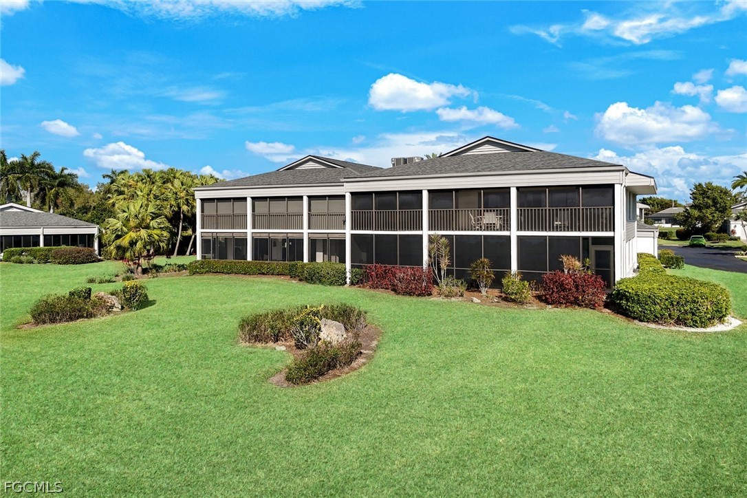 Private Elevator to Your second-floor condominium featuring an inviting Great Room plan with Western Rear Exposure and exceptional views of water, the golf course, and tropical landscapes. This fully furnished turnkey residence offers two bedrooms, two bathrooms, and a single-car garage. Dining Room Could Easily Be Converted to a 3RD Bedroom or Den. Overlooking the Bobcat Championship Golf Course #4 & #5, The condo offers raised ceilings, Window Treatments The enclosed four-season lanai is equipped with Storm Smart electric shutters and removable vinyl windows. Easy Extra Year Round Living Space. The remodeled kitchen includes a spacious breakfast bar, stainless steel appliances, soft-close wood cabinetry with pull-outs, custom window treatments, and blinds. Additional features comprise a well-maintained air conditioning system, Square D electrical panel, new shingle roof, extra built-in storage, and recent paint. This residence did not incur any water intrusion from Hurricane Ian. Membership to the Country Club is optional, 2026 incentive discounts are currently available for new residents. The property is conveniently located just 15 minutes from RSW Airport, within biking distance to Lakes Park's Market Day, and surrounded by over 8 miles of sidewalks, streetlights, more than 20 lakes, and abundant wildlife. Beaches such as Sanibel and Fort Myers Beach are only 20 minutes away. Some amenities described may require membership. There is also a children's park available. Discover the lifestyle offered in The Forest community. Come Live & Play In The Forest!