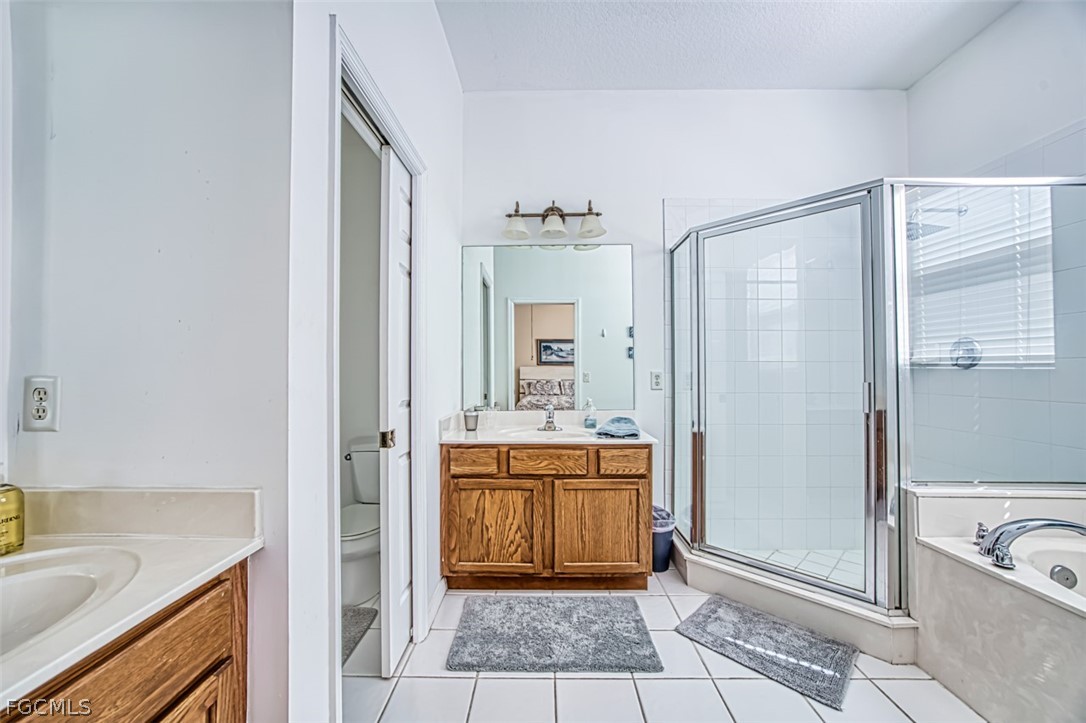 Upstairs, the generous primary suite includes two walk-in closets and an ensuite bath with dual sinks, soaking tub, and separate shower. The large guest bedroom features its own private bathroom, offering comfort and privacy for visitors. A convenient upstairs laundry area and additional owner’s storage closet are located between the bedrooms.