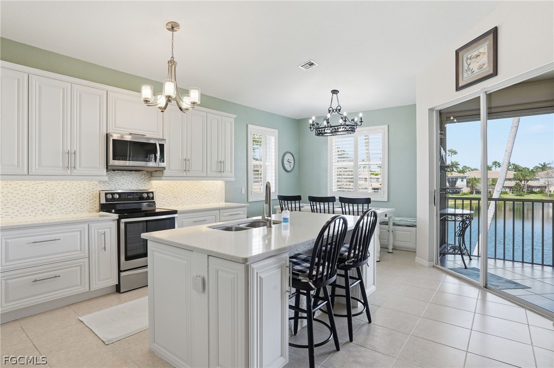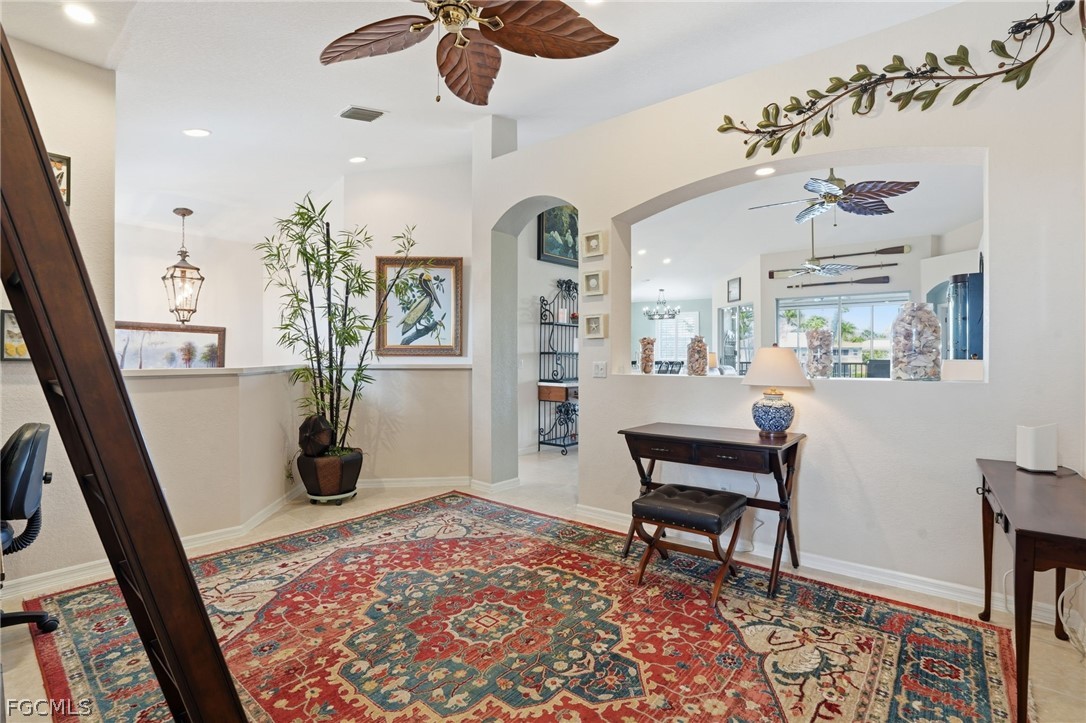 Welcome to effortless Florida living at its finest. Nestled within the sought-after, gated community of Reflection Lakes, this stunning turnkey 2nd-floor, 3-bedroom, 2-bath condo is a rare find — thoughtfully updated, beautifully curated, and move-in ready. From the moment you step inside, the attention to detail is undeniable. Gorgeous hardwood floors grace the entry staircase and the bedrooms, while sleek tile flows throughout the main living areas — not a square inch of carpet in sight. The designer kitchen is the heart of the home, featuring rich quartz countertops, a tasteful tile backsplash, and gleaming stainless steel appliances. A built-in dining nook — big enough to seat six or more — makes everyday meals and entertaining equally effortless. Perfect for entertaining, the kitchen overlooks the main living area—a bright, open space featuring beautiful lake views and an abundance of natural light. A spacious second living area offers incredible flexibility — currently used as a stylish office and library, it could easily become a media room, playroom, or the flex space you have dreamed of. Step out to your private lanai and take in serene, unobstructed lake views — the perfect backdrop for your morning coffee or evening wind-down.The oversized 2-car garage is just as impressive, complete with a professionally coated floor, pull-down attic access, and ample storage. Enjoy total peace of mind with recent upgrades, including a new tile roof installed in 2025. This home is fully protected with convenient electric hurricane shutters on the lanai and easy-to-use accordion shutters on all other windows. Every detail has been considered! Beyond your front door, the lifestyle at Reflection Lakes is second to none. The main clubhouse is a hub of activity, offering a packed calendar of social events, a resort-style pool, tennis, pickleball, bocce, billiards, and a large fitness center. Within the condo neighborhood, you have easy access to a second pool, another fitness center, and a quiet library. It’s the perfect blend of vibrant community and private retreat in a location that truly can't be beat. Homes like this don't last — schedule your private showing today.
