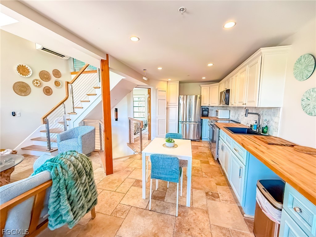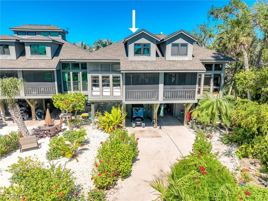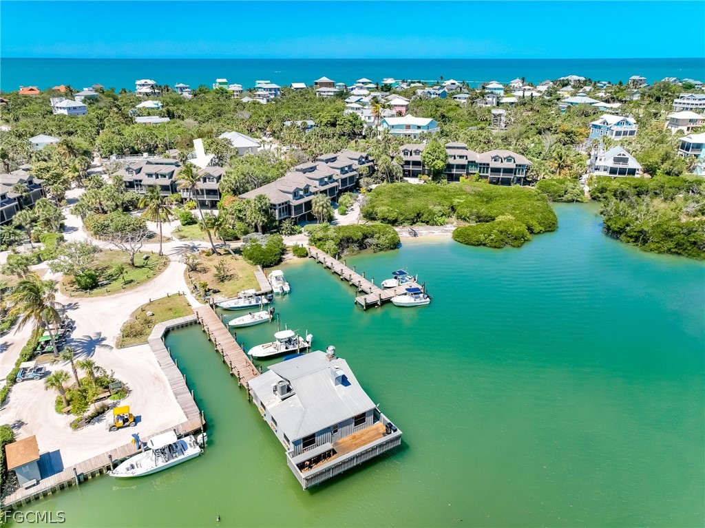 Priced to Sell! Fantastic Views from this townhome located within the quaint waterfront boating community of Safety Harbor Club on North Captiva Island. Completely updated in 2025 with luxury finishes and decor, this townhome features modern coastal design, travertine marble floors, custom baths, elegant trimwork, and an open, light-filled layout that captures the serene harbor views. The thoughtfully designed interior features a sumptuous living room set with down-filled cushions, perfect for nestling in after a long day of beachcombing. The main living area flows seamlessly to a covered screen porch where you can enjoy peaceful harbor breezes and sunrises while watching dolphins & boats pass by. The kitchen and living spaces are ideal for entertaining or relaxing after a day on the water. The first-floor primary suite boasts a fantastic high-end resort feel, with an en-suite bath featuring a walk-in custom-tiled shower & glass enclosure, plus a separate commode room with a smart toilet/bidet. Upstairs, a perfect light-and-airy sleeping loft and a large guest bedroom share a completely reimagined & renovated bathroom, offering spa-like comforts like a deep-soaking claw-foot tub, chic tile, and a convenient curb-free shower area. On the ground level, the property offers a valuable bonus storage room and a dedicated golf cart garage, providing ample space for island gear, beach equipment, and convenient transportation. Located close to the community dockage and ferry landing, this home is perfectly positioned for effortless island access and convenient boating. Ownership includes access to Safety Harbor Club amenities, featuring a heated pool, tennis and pickleball courts, clubhouse, beach access, and additional dock slips.