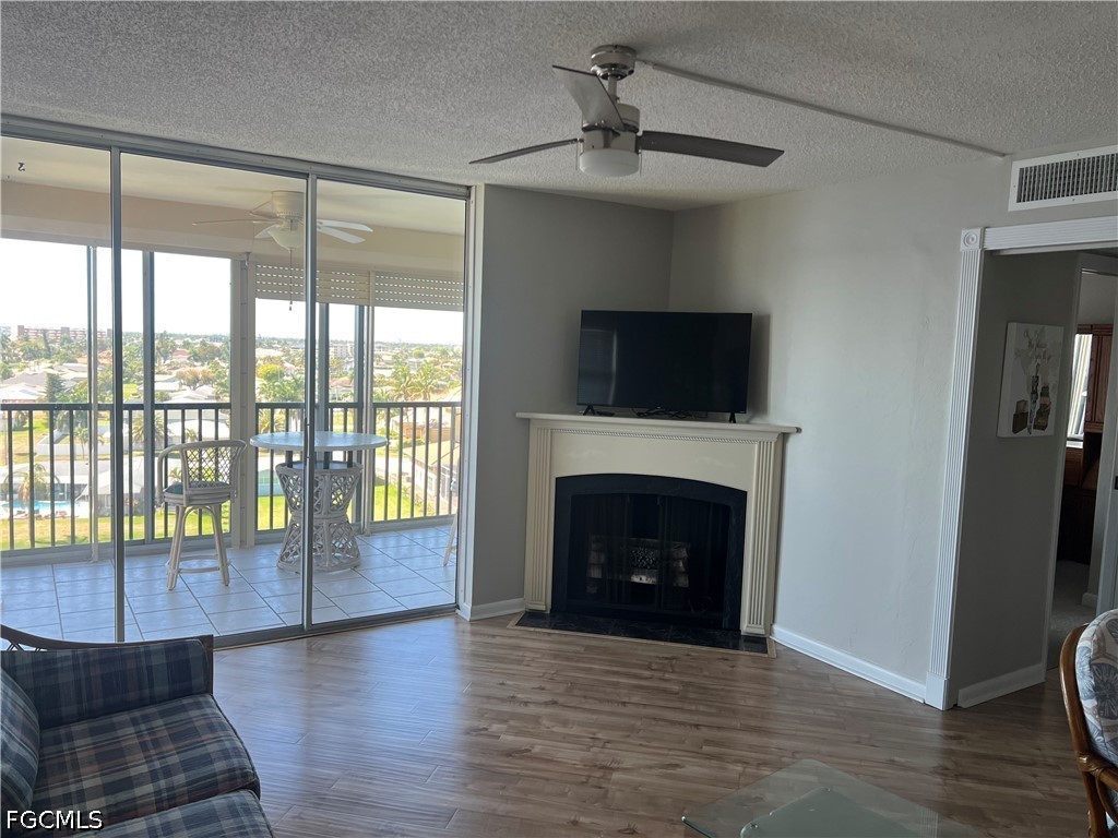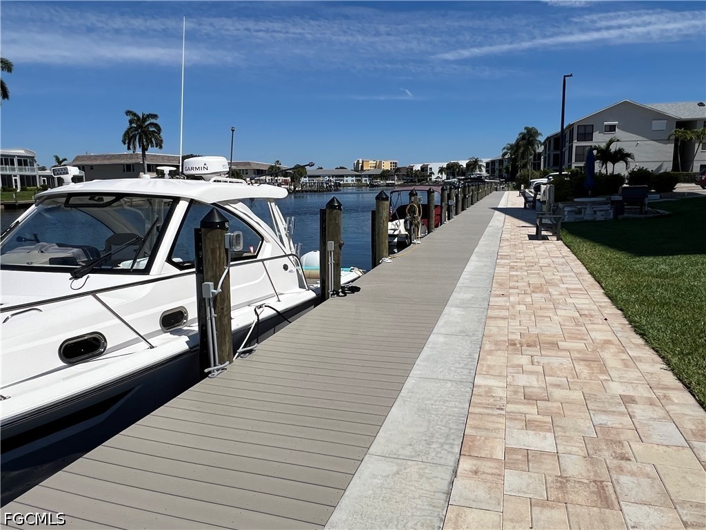 Enjoy your morning coffee with beautiful views of the Caloosahatchee and intersecting 200 ft canals and Cape Coral’s 4th of July fireworks display from this top floor end unit at River Towers. This 2 bed, 2 bath condo is located on the 8th floor and features newer carpet in guest bedroom, Living room with laminate floors, fireplace and sliding glass doors to the enclosed balcony, newer Stainless appliances in kitchen, newer A/C (2020) and electric shutters on the screened balcony. There is a large storage room on the ground floor. River Towers is a 55+ community with several amenities, including a very large heated riverfront swimming pool with Tiki hut, shuffleboard, horseshoes, billiards, ping pong, a library and 2 social rooms. New Community boat docks that are first come, first serve and a new fishing pier. Each unit includes one assigned parking space and plenty of guest parking. Just minutes to downtown Cape Coral, shopping & dining. Walk to Jaycee Park, a Riverfront park that is under renovation now but should be opening soon. Sorry no pets allowed and no smoking.