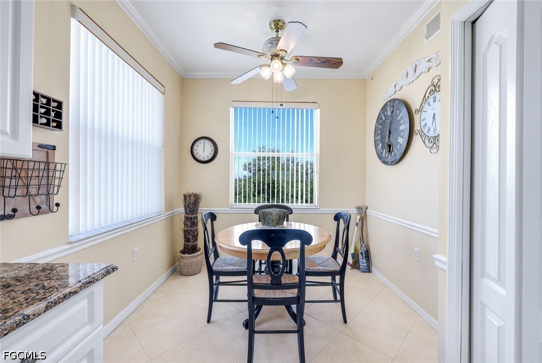 Offering an INCREDIBLE OPPORTUNITY to own a RARELY AVAILABLE, 3rd-floor, END -UNIT with one of the VERY BEST VIEWS in HERITAGE POINTE! This spacious 2-bedroom + den, 2-bath, condo offers over 1,400 square feet under air, plus a screened entry and screened lanai with desirable west and north exposure capturing sweeping views of sunset skies, large lake with lighted water fountains, lake beach, pool area, and amenities center. Selling TURNKEY, this bright and airy Colonade model is filled with lots of natural light thanks to an abundance of windows. The well-designed floor plan is enhanced by 16” ceramic tile set on the diagonal throughout the living areas, kitchen, breakfast nook, foyer, both bathrooms, lanai, and entry. Crown molding and chair rail accents add warmth and character in the breakfast nook, den, and foyer. Both bathrooms have granite topped vanities, and the kitchen which features granite countertops and abundant cabinetry opens seamlessly to the main living space—perfect for everyday living and easy entertaining. Also included is a sizeable storage unit, conveniently located directly across from the front door, and one deeded covered parking space. Heritage Pointe is a financially sound, gated, pet-friendly community set on 38+ acres of lush tropical landscaping surrounding a scenic lake. Maintenance fees are comparatively low and include fiber optic-based HD TV and high-speed internet service, as well as water and sewer. Residents enjoy a recently renovated clubhouse, heated resort-style pool and spa, fitness center, library, paved walking/jogging path, and a lovely outdoor gathering areas with gas grills, bocce ball, cornhole, and a putting green. The community is very active with an extensive social calendar that offers a wide variety of events and activities. Ideally located in South Fort Myers near Fort Myers Beach, the Sanibel/Captiva Islands, HealthPark Medical Center, shopping, dining, entertainment, and nearby parks with tennis and pickleball courts, and just a short drive from RSW International Airport, this property is perfect as a year-round residence, seasonal winter retreat, or investment opportunity. Schedule your private showing today!