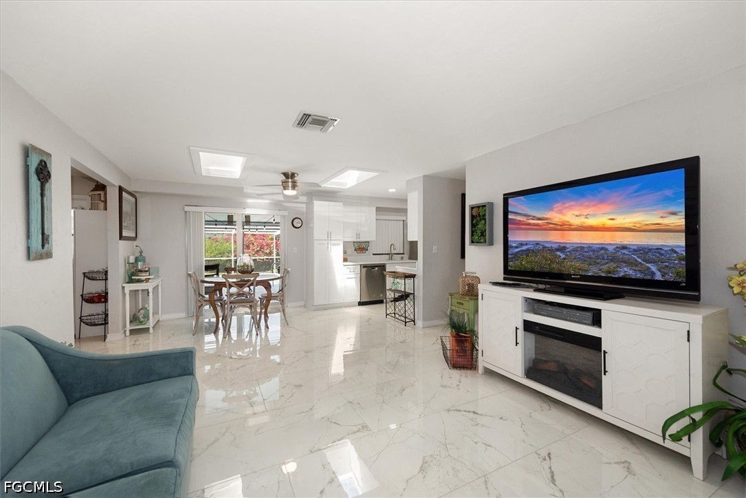 Recently remodeled Florida style home, 3 bedrooms 2 bath pool home ready to move in, partially furnished with newer kitchen cabinets and appliances. Eye catching tile floors though out. Both baths have been redone with new cabinets, countertops and showers. The living room and dining area is open with sliding doors to a large screened in lanai with a pool and beautiful landscaping. The back yard is fenced to ensure privacy. It has a one car garage with a large area for a workshop and includes a laundry room and a third bath. Skylights provide excellent natural lighting in the dining area. Great location just off of Business 41, close to downtown Fort Myers with plenty of shopping and entertainment. Close to I75 and not far from Florida's great beaches.