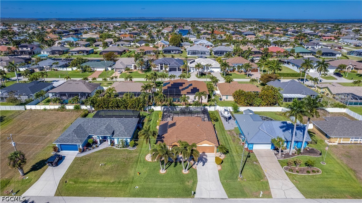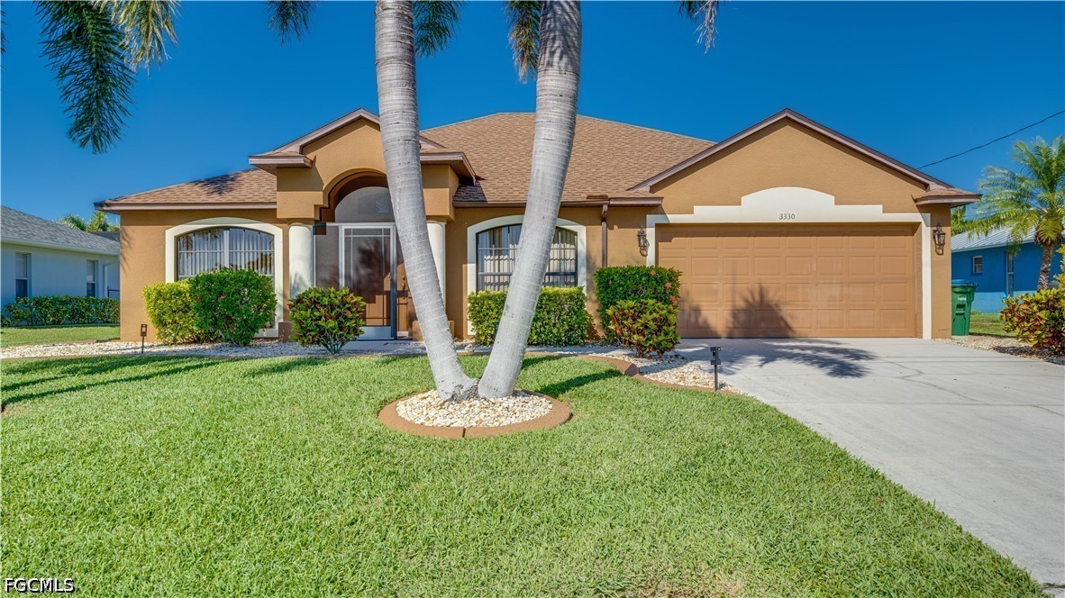 Located in highly desirable Southwest Cape Coral, this move-in-ready 3-bedroom, 2-bath pool home offers just over 1,800 square feet of well-designed living space with the updates and features today’s buyers are actively searching for, including a new roof in 2023, new AC in 2026, and city water and sewer assessments in and fully paid. A screened front entry welcomes you into a bright interior with formal living and dining areas that transition seamlessly through a central hallway into a spacious open kitchen and secondary living space, creating a functional layout ideal for both everyday living and entertaining. The kitchen is equipped with stainless steel appliances, Corian countertops, wood cabinetry, and a breakfast bar that connects naturally to the main living area, all enhanced by volume ceilings that add to the open feel. The split-bedroom floor plan provides privacy, with the primary suite situated on one side of the home featuring dual sinks, a jetted soaking tub, and a separate walk-in shower, while two additional bedrooms are located on the opposite side along with a full bath that also serves as a convenient pool bath with direct access to the lanai. Pocketing sliding glass doors open fully to an extended pavered screened lanai, blending indoor and outdoor living and showcasing a saltwater, solar-heated pool surrounded by ample space for lounging, dining, and entertaining. This home delivers the combination of location, layout, and major system updates that make Southwest Cape Coral properties so desirable, offering both immediate comfort and long-term value.