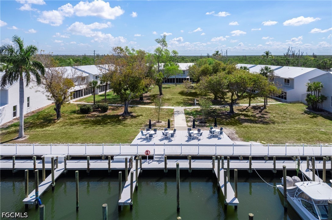 The lanai overlooks a quiet courtyard with easy viewing of the boardwalk, canal and docks and the evening sunsets are stunning to enjoy from here.