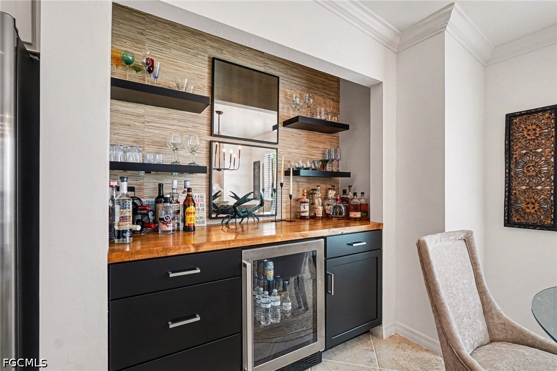 The owner’s suite serves as a private retreat, complete with a well-appointed en-suite bath. Thoughtful upgrades throughout the home include accent walls, a stylish kitchen backsplash, updated lighting and fans, and a custom dry bar—adding both elegance and functionality.