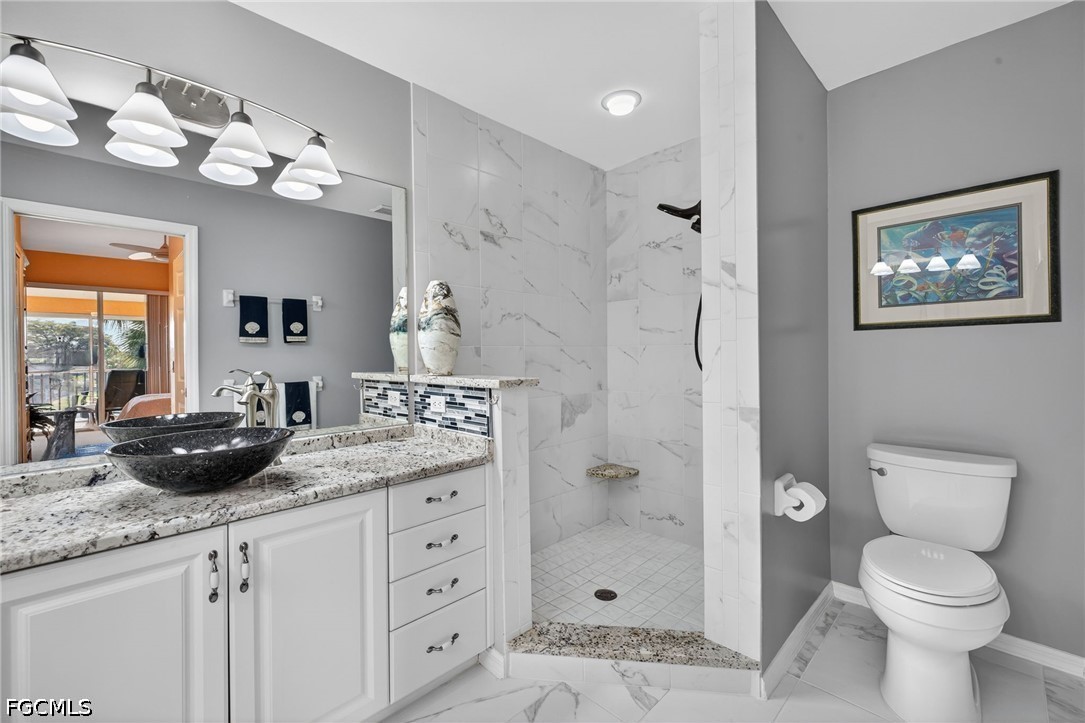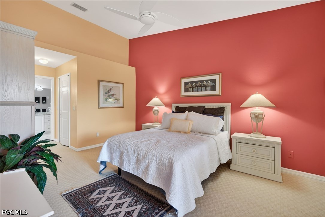 The End unit provides additional windows and natural light. Features include imported wool carpet, plantation shutters throughout, and updated fixtures and fans. Both bathrooms have been updated with newer tiled showers, updated cabinetry, and upgraded countertops. The primary bath offers a spacious, modernized layout, and the guest bath has been similarly improved.