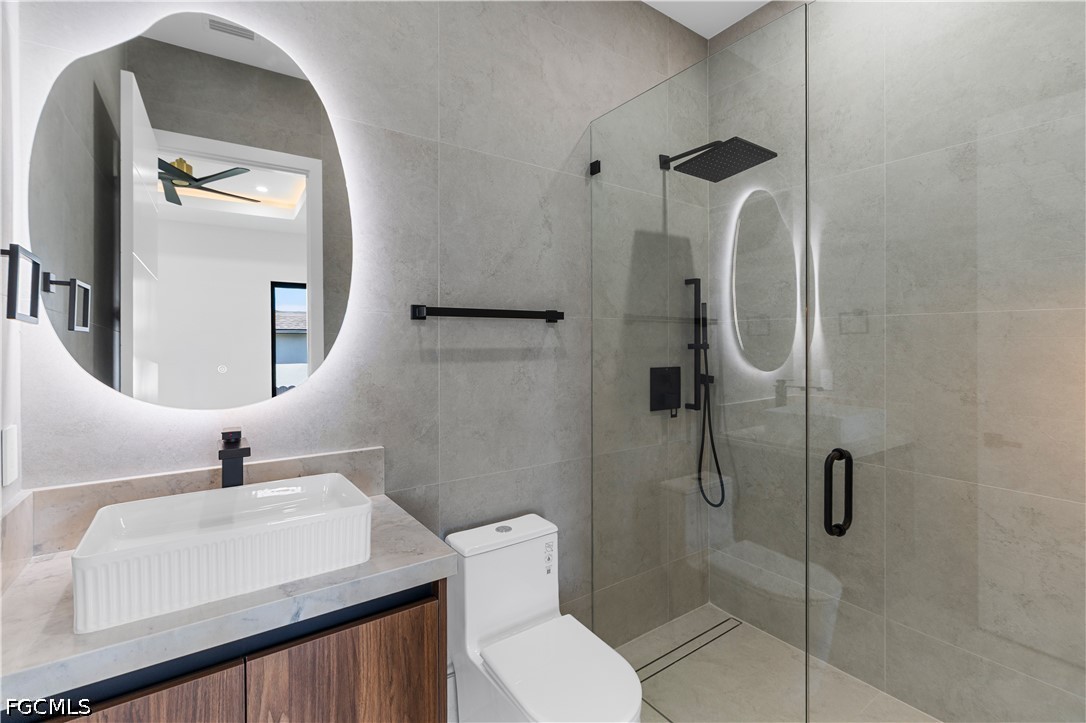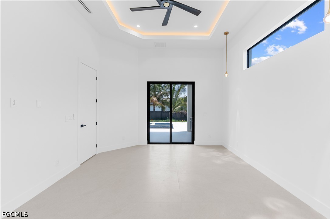 The spacious primary suite offers a true spa-like retreat, highlighted by a stunning walk-in dual shower designed for both relaxation and style. Enjoy true Florida living with a fully automated heated pool and spa, offering control of temperature, lights, jets, and waterfall features right from your phone. The outdoor space is designed for entertaining, lush coconut palms, and a private fenced backyard.