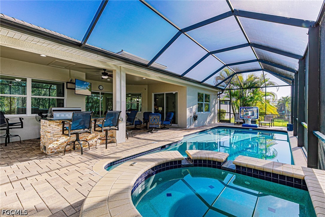 The backyard is an entertainer's dream, showcasing a sparkling pool and spa complemented by a fully equipped outdoor kitchen-perfect for year round enjoyment. Furry friends will be delighted by their very own fenced in yard space. Major capital improvements include a new steel roof, full impact windows and doors, Upper Level HVAC 2019, Lower Level HVAC 2020, Cage Screen 2019, Exterior Home Painted 2024, Pool Pump 2025, and more reducing future expenses. Sellers have an assumable flood insurance policy for $1700/year for peace of mind.