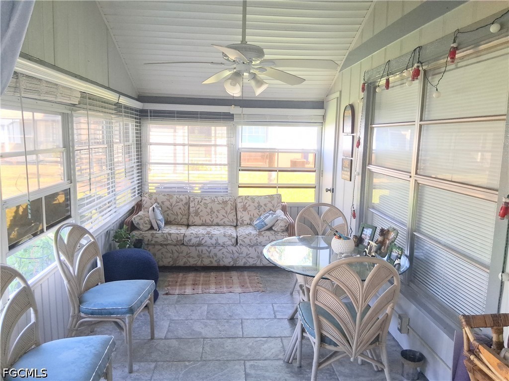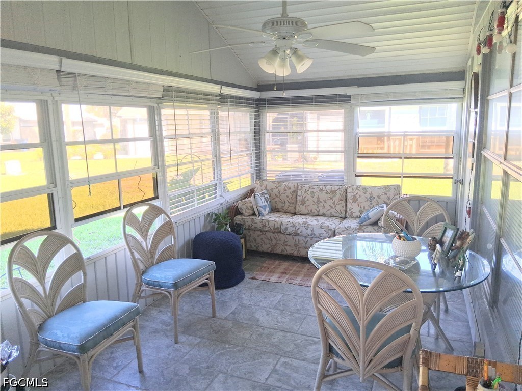 Welcome to this delightful and meticulously maintained villa-attached residence located in the Beacon Square community, tailored for active living for those aged 55 and above in Central Lehigh Acres. This corner unit is filled with natural light and provides a stunning view of the community pool, fostering a welcoming ambiance throughout. Upon entering, you will find an open and spacious living area enhanced by vaulted ceilings, a skylight, and high-quality laminated wood flooring that extends seamlessly throughout each room. The well-equipped kitchen is ideal for crafting delicious meals, while both bedrooms offer generous space and comfort for effortless living. Additionally, there is an additional SUNROOM that provides extra living space. This home is elegantly decorated and comes fully furnished, making it genuinely move-in ready for its next fortunate buyer. Experience the Florida lifestyle on your screened front entry, which serves as a perfect transition between indoor and outdoor living. Outside, unwind by the community pool for leisurely afternoons and social gatherings. With low HOA fees and a prime location that places you near local amenities and vibrant community attractions, not to mention its beautiful SW Florida beaches, this property represents an outstanding opportunity for both full-time and seasonal residents to enjoy a refined yet relaxed lifestyle.