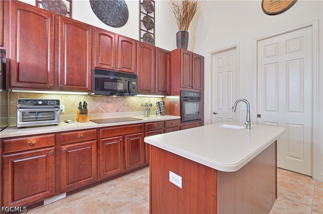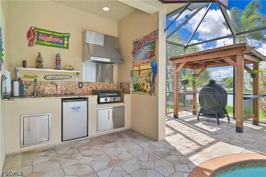 The oversized lanai is built for entertaining, featuring an outdoor kitchen, pergola, and a solar-heated saltwater pool, along with convenient access to a half bath. The fully fenced yard also includes a separate fenced dog run.