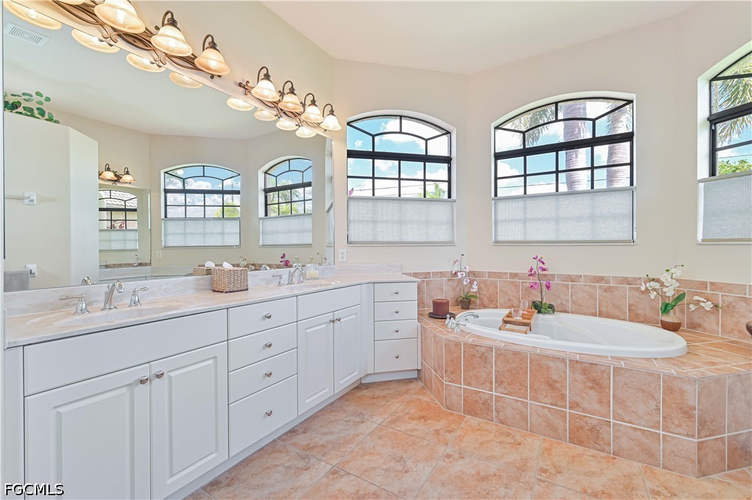 Designed for both everyday comfort and entertaining, the home offers an open-concept kitchen with a pantry that seamlessly flows into the main living area, along with an additional separate living room for added flexibility. The den can easily serve as a home office or optional fourth bedroom. The expansive primary suite is a true retreat, featuring two walk-in closets, dual vanities plus a third dedicated vanity space, a walk-in shower, and a relaxing soaking tub, and sliding glass doors that open directly to the lanai.