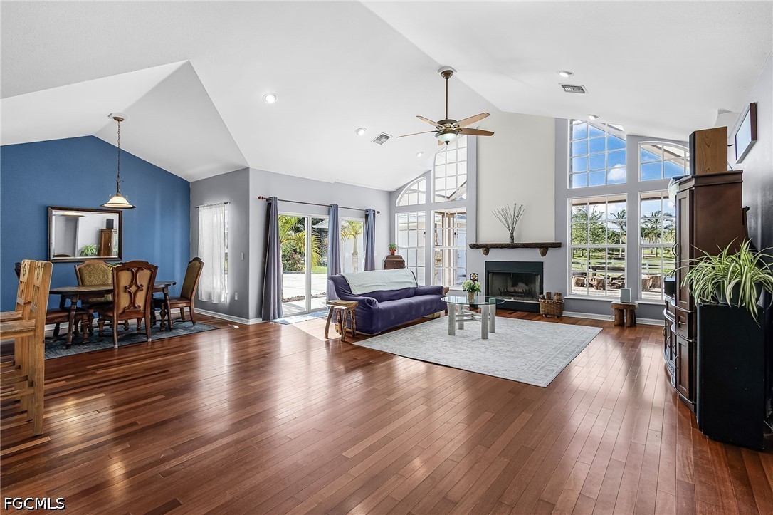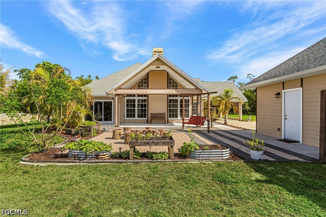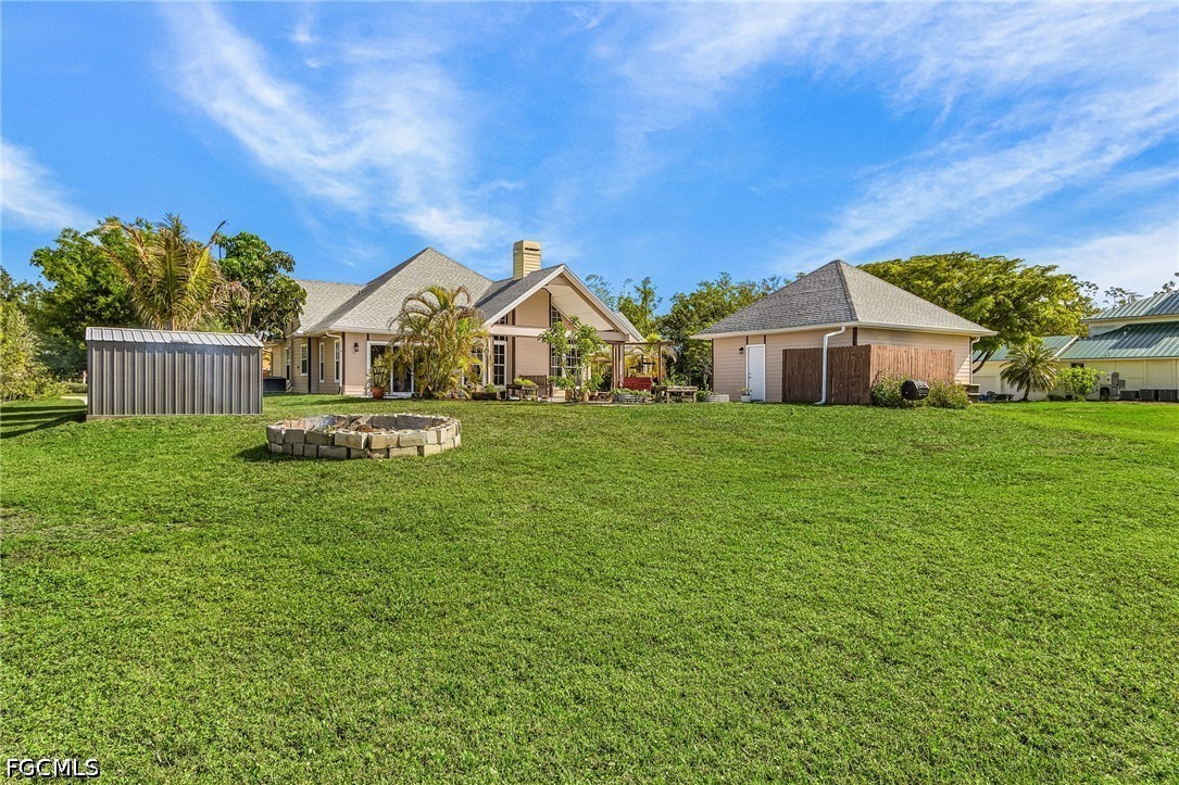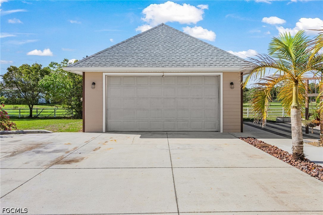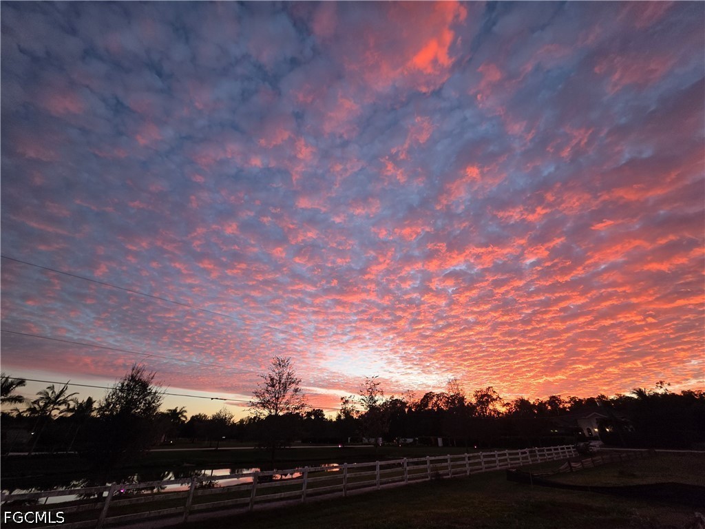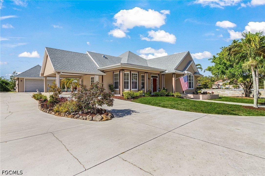 A rare opportunity to own your piece of paradise in the Penzance Estates area. This 3-bedroom, 2-bathroom home is located on over 1 acre of property, which gives plenty of room for a pool, gardening, and entertaining around the fire pit in the evening. The detached garage can be used for a man cave, she shed, bonus room or more, while still having a space for your vehicle under the carport. The Brazilian cherry wood flooring gives a warm feeling as you enter the home, with durable LVP in the bedrooms. Cozy up around the fireplace as the focal point in the open great room. The formal dining area and eat in kitchen gives you options as you entertain. Full pantry and desk area in the kitchen give plenty of storage, along with custom drawer separators. New appliances in 2024. Roof – 2022. The master bath features dual sinks with a separate soaker tub and shower. All bedrooms have walk-in closets for more storage. This is a beautiful community with access to I-75, RSW, Red Sox and Twins stadiums, shopping, grocery, and many restaurants.