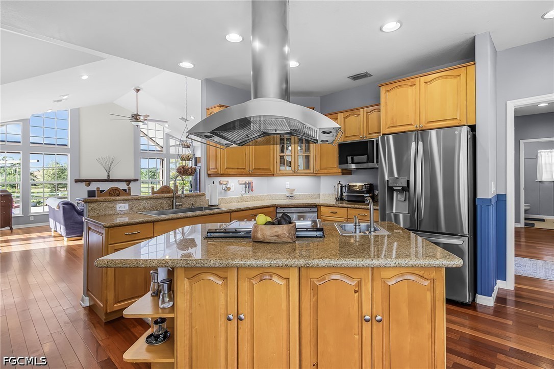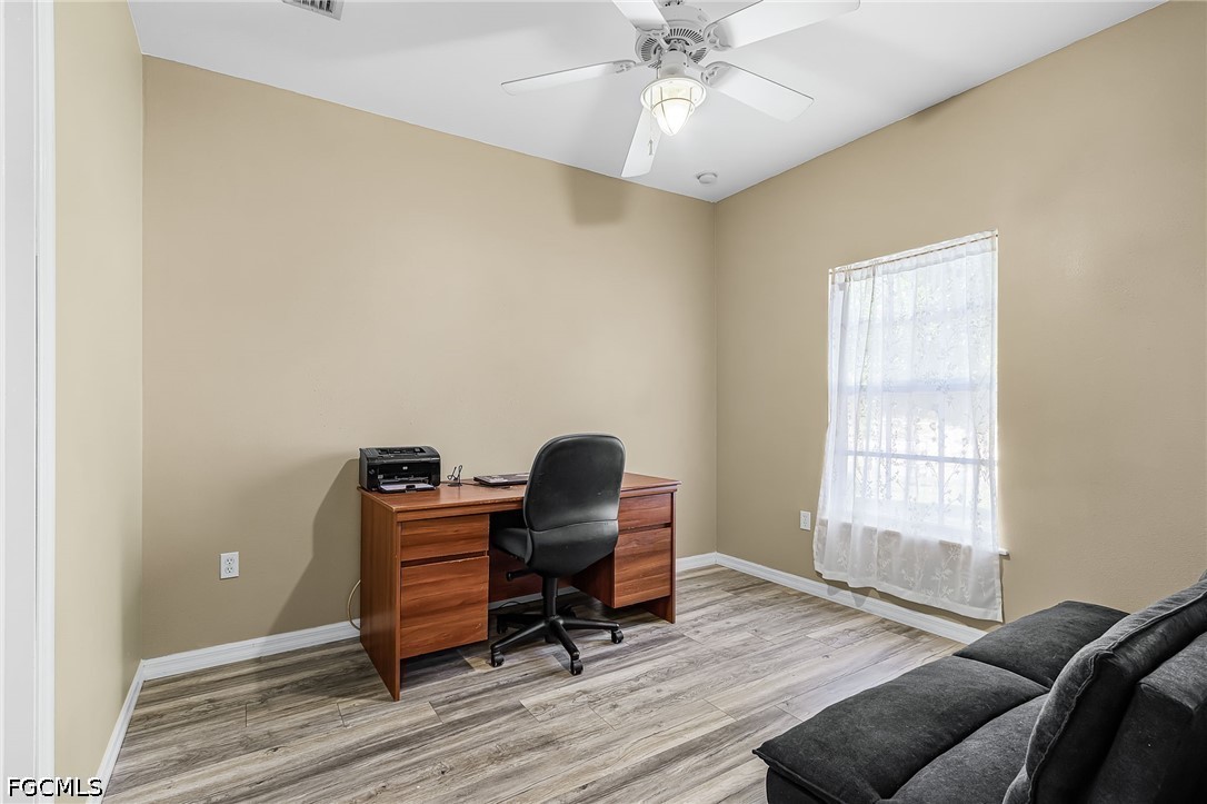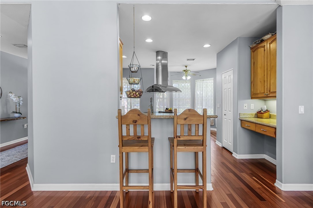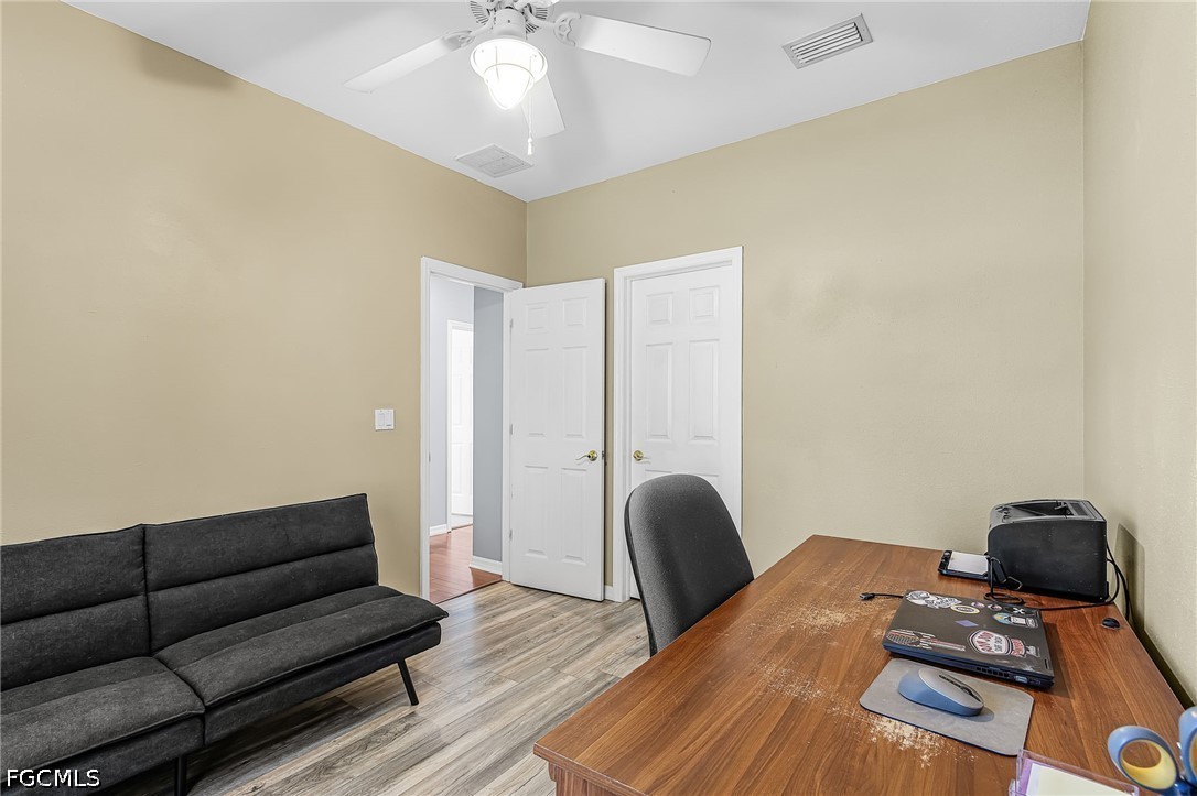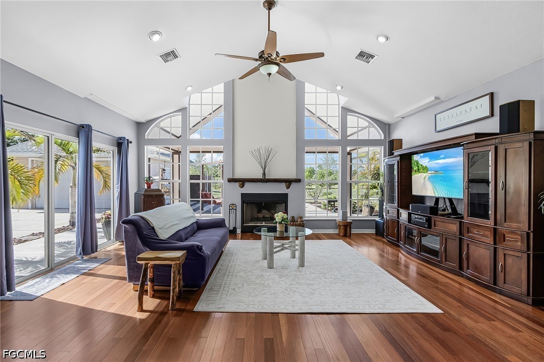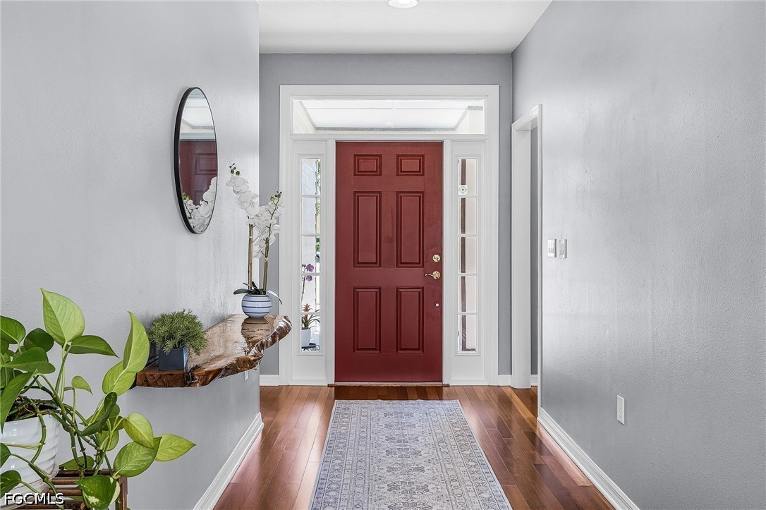 A rare opportunity to own your piece of paradise in the Penzance Estates area. This 3-bedroom, 2-bathroom home is located on over 1 acre of property, which gives plenty of room for a pool, gardening, and entertaining around the fire pit in the evening. The detached garage can be used for a man cave, she shed, bonus room or more, while still having a space for your vehicle under the carport. The Brazilian cherry wood flooring gives a warm feeling as you enter the home, with durable LVP in the bedrooms. Cozy up around the fireplace as the focal point in the open great room. The formal dining area and eat in kitchen gives you options as you entertain. Full pantry and desk area in the kitchen give plenty of storage, along with custom drawer separators. New appliances in 2024. Roof – 2022. The master bath features dual sinks with a separate soaker tub and shower. All bedrooms have walk-in closets for more storage. This is a beautiful community with access to I-75, RSW, Red Sox and Twins stadiums, shopping, grocery, and many restaurants.