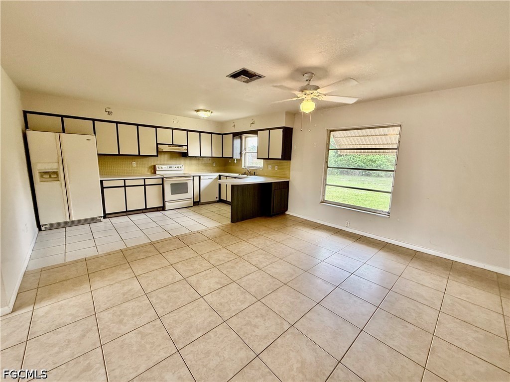 Almost 1600 square feet of living area in this 2 bedroom 2 bath home featuring an oversized double garage with plenty of storage, HALF ACRE LOT ON CENTRAL WATER, NEW DIMENSIONAL SHINGLE ROOF IN 2018, NEW WATER HEATER IN 2020, CENTRAL HEAT AND AIR NEW IN 2018, formal living room plus large family room off of the kitchen area, kitchen features breakfast bar and appliances, CERAMIC TILE FLOORS THROUGHOUT THE ENTIRE HOME, primary bedroom with ensuite private bathroom, walk in closet in guest bedroom, 18 X 10 screened lanai overlooks the cleared half acre lot, excellent location within walking distance to schools and stores and just minutes to I-75, Ft Myers and the SWFL International Airport. NO FLOOD INSURANCE REQUIRED. LEHIGH IS THE HIGHEST ELEVATION IN LEE COUNTY.