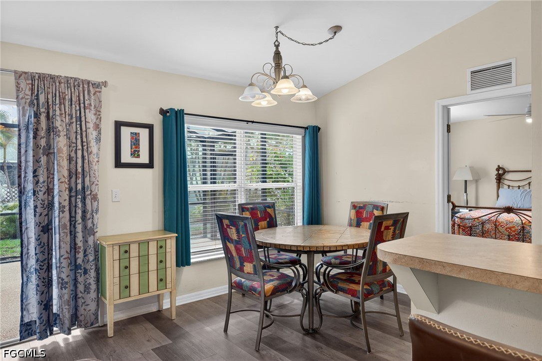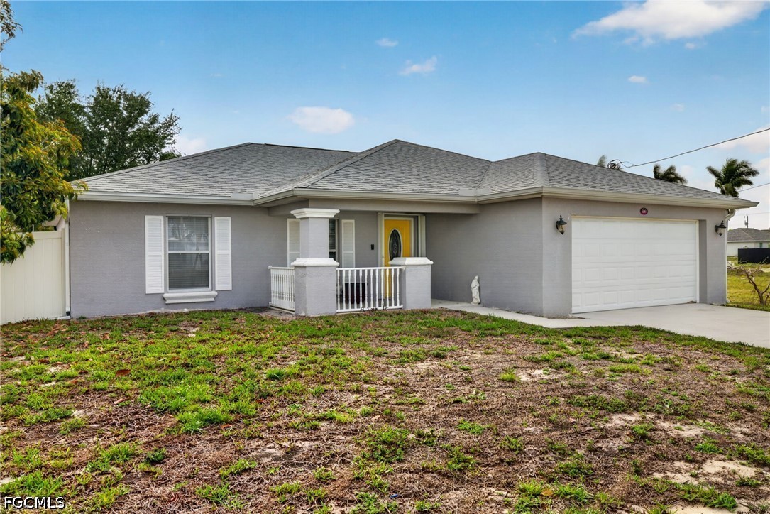 Welcome to Cape Coral, this 3-bedroom, 2-bath home with a versatile den/office flex space, offering 1,468 square feet of comfortable living. Built in 2004, this property combines solid construction, making it move-in ready. Step inside to find an open main living area highlighted by cathedral ceilings, creating a bright, airy feel with lots of windows east-facing, displaying the morning's natural light. The home features newer vinyl flooring, providing both durability and modern appeal in the main area. The thoughtful layout includes nicely sized bedrooms, ample storage, and an in-residence laundry room for added convenience. The kitchen is equipped with newer appliances, making meal prep easy and efficient. Major updates include a new roof installed in 2022 and a new AC system in 2025, offering peace of mind for years to come.