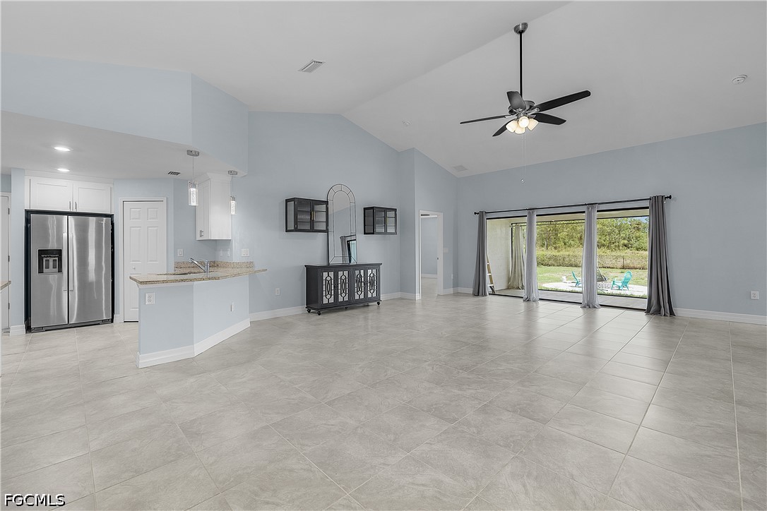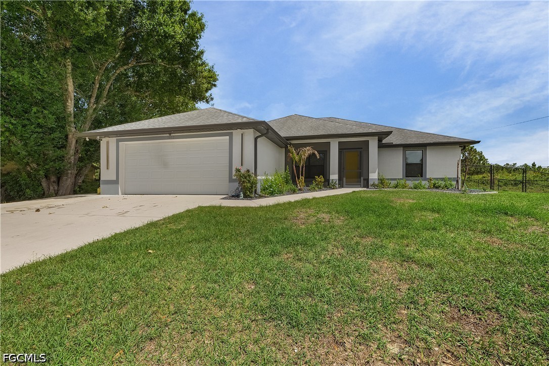 Discover the perfect blend of space, comfort, and thoughtful upgrades in this beautifully maintained 4 bedroom, 2 bathroom home offering 2031 square feet of interior living space on an oversized HALF ACRE homesite in Lehigh Acres. From the moment you arrive, the extended driveway creates a strong first impression while providing plenty of room for multiple vehicles, guests, or recreational parking, all framed by the wide open feel that comes with a larger lot. Inside, the home welcomes you with bright open living spaces finished with tile throughout, creating a clean and cohesive look that is both stylish and easy to maintain. Natural light fills the interior and highlights the spacious layout, where the living, dining, and kitchen areas connect effortlessly for everyday living and entertaining. The kitchen serves as the center of the home with generous counter space, quality cabinetry, and a layout designed for both functionality and gathering. The bedrooms are comfortably sized and thoughtfully arranged, while the bathrooms continue the same polished feel found throughout the home. This property truly stands out when you step outside into the fenced backyard, where privacy and usable outdoor space come together to create an exceptional setting for relaxing or entertaining. A custom built OUTDOOR FIREPLACE adds warmth and character, making the backyard feel like an extension of the living space and the perfect place to enjoy evenings outdoors. The included LARGE STORAGE SHED offers outstanding flexibility for tools, equipment, hobbies, or additional storage, while the oversized lot still leaves plenty of room to enjoy the outdoors. One of the most valuable upgrades is the fully AIR CONDITIONED GARAGE, offering year round comfort for projects, workouts, storage, or a flexible bonus space that adapts to your needs. The home also includes a camera and security system, adding peace of mind and convenience for everyday living. Every feature has been designed to offer more comfort, more functionality, and more value, creating a property that feels move in ready and delivers the kind of lifestyle buyers are searching for the moment they walk through the door. Set up a showing today before it's too late!