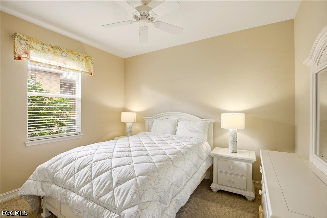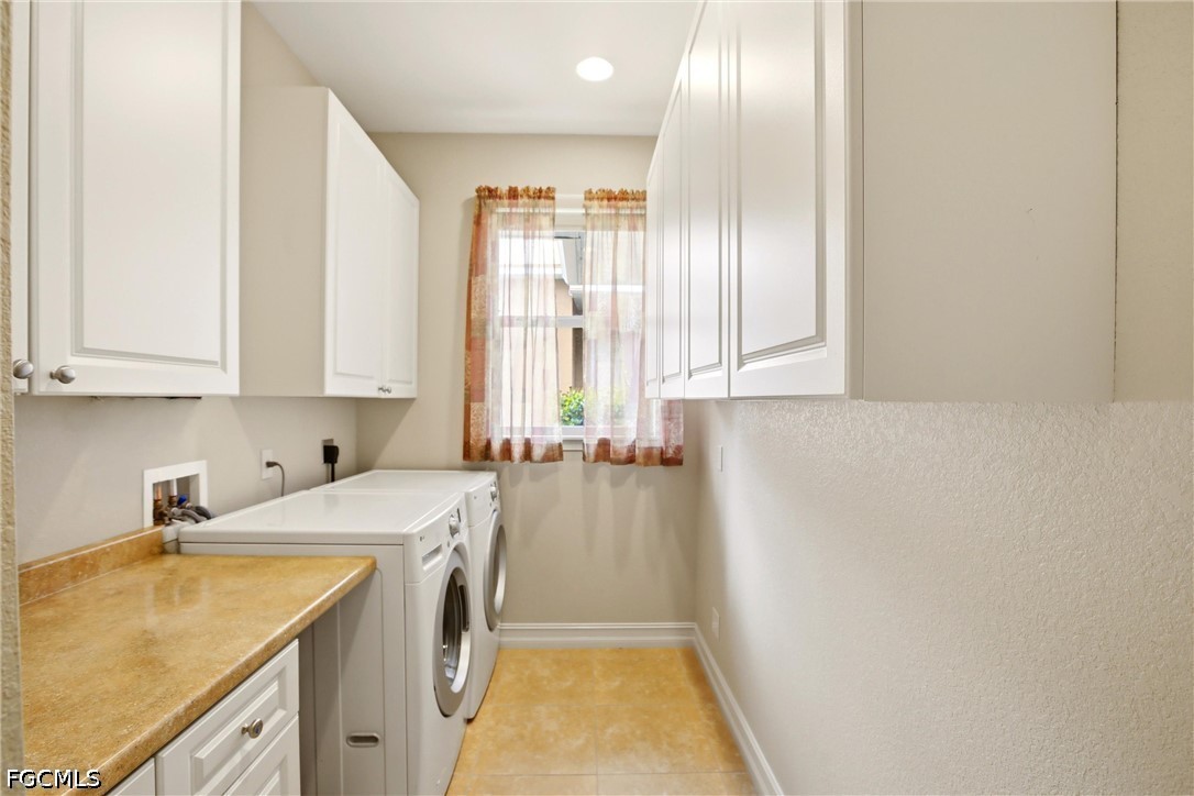 The split floor plan ensures privacy, highlighted by a luxurious primary suite with a custom bump-out ideal for a home office or sitting area, plus direct access to the pool deck. The spa-like ensuite features dual vanities, a built-in bench with storage, linen closet, and an expansive walk-in shower with dual showerheads. Guest bedrooms are generously sized, with the third offering French doors to the lanai. A well-appointed guest bath includes a tub/shower combo with convenient lanai access. The oversized interior laundry room offers extensive cabinetry, folding space, and a large storage closet for added convenience.