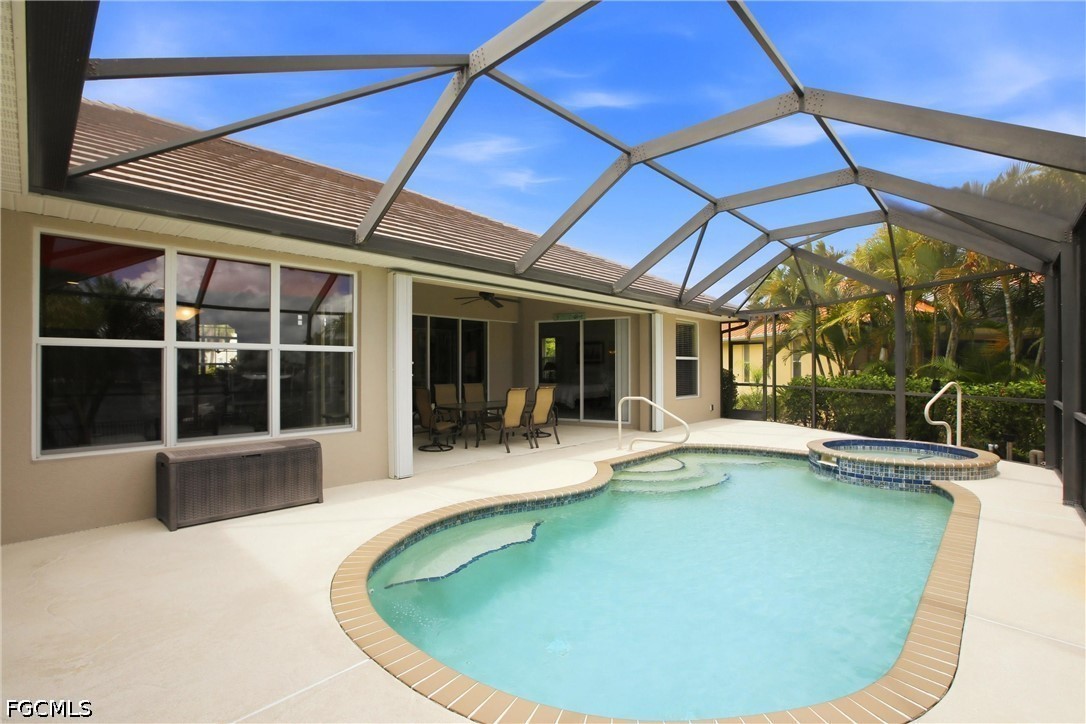 Outdoors, enjoy a private tropical oasis with a covered seating area, heated saltwater pool, spa, lush landscaping, fully fenced backyard, and full irrigation system. Boaters will appreciate 40 feet of seawall, deep water canal, and a private concrete dock with quick access to Charlotte Harbor via Buckley’s Pass.