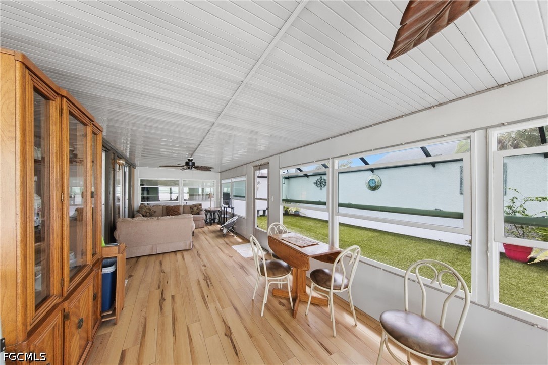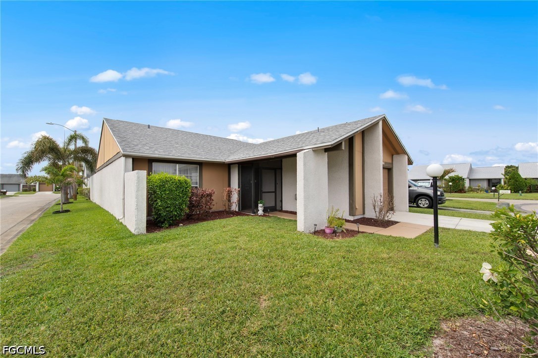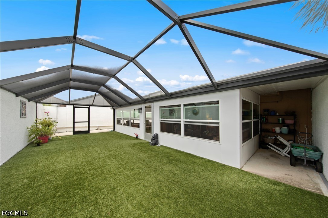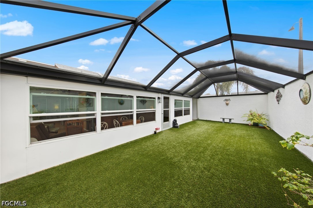 Welcome to Woodcrest Village, a highly desirable 55+ community offering comfort, convenience, and Florida living at its finest, all without the HOA breaking the bank! This beautifully maintained 2-bedroom, 2-bath, 1-car garage home features a bright, open, and inviting floor plan enhanced by vaulted ceilings and dual-entry front doors that create an immediate sense of space and elegance. Step inside to find newly installed vinyl flooring throughout the entire home, including the expansive Florida room, providing a clean, modern, and cohesive look. The home has been thoughtfully updated with a brand-new A/C system and ductwork (2025), along with new vents, ceiling fans, lighting, and mirrors throughout for added comfort and style. The roof was replaced in 2018, offering peace of mind for years to come. The kitchen is well-appointed with Corian solid surface countertops, tile backsplash, instant hot water dispenser, dishwasher, cooktop, built-in wall oven, and microwave, making it both functional and efficient for everyday living and entertaining. The spacious primary suite includes a custom walk-in shower (2021), and both bathrooms have been tastefully updated over time, including new toilets and a refreshed guest bath vanity and faucet (2026). Additional improvements include new flooring (2021), garage door opener (2021), washer, dryer, garbage disposal, and kitchen upgrades completed in 2022. Enjoy true Florida living with an exceptional amount of outdoor space. The home features four sets of sliding glass doors leading to a large enclosed wraparound Florida room with impact windows, creating a seamless indoor-outdoor flow filled with natural light. Step further outside to a huge 35’ x 15’ screened lanai, complete with newly installed astroturf for low-maintenance enjoyment, a bonus storage cove, and plenty of room to relax or entertain. The private backyard is fully enclosed with a courtyard-style privacy wall and features southern rear exposure for ideal sunlight throughout the day. The lanai and entry screening were fully redone in 2023 with new metal framing and screening, along with updated outdoor drainage. With major system updates, extensive improvements, and multiple indoor and outdoor living spaces, this home offers exceptional value in a sought-after active adult community. Move-in ready and meticulously maintained—this is Florida living made easy.