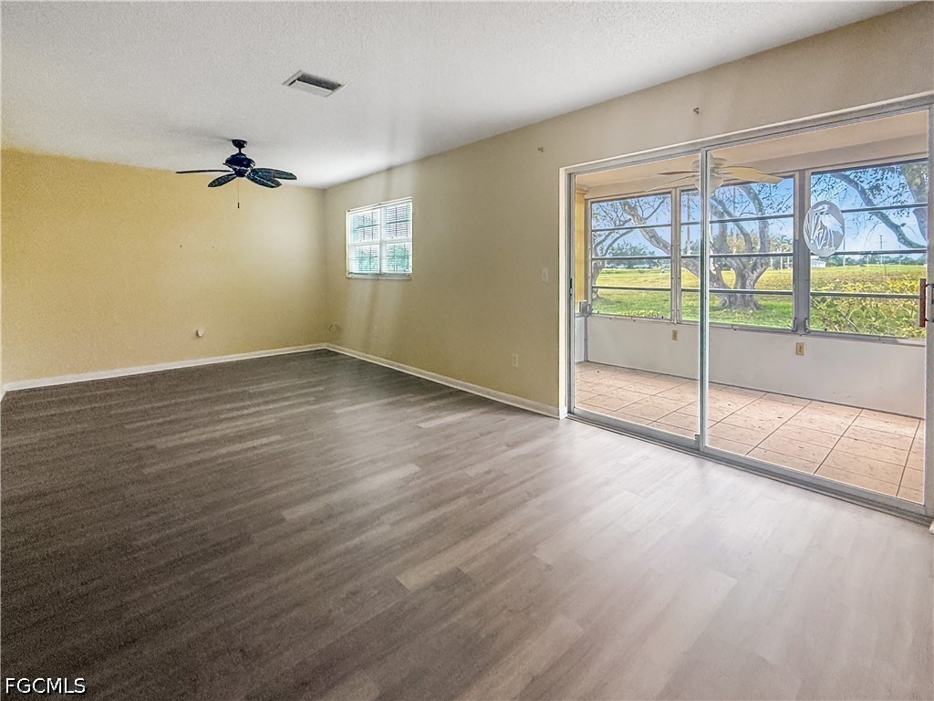 Recently updated and move-in ready 2 bedroom, 2 bathroom villa with attached garage, perfectly situated directly on the golf course. The home features a completely renovated kitchen and bathrooms, beautiful new LVT flooring throughout, fresh stainless steel appliances, and energy-efficient double-pane windows. Just a short distance to the Golfside East Clubhouse with its library, pool, hot tub, and shuffleboard. The charming executive golf course is open to the public (pay-as-you-play) and includes a casual pub-style restaurant. Conveniently located less than 5 minutes from Lee Hospital, with a wide range of medical specialties nearby. Easy access to beautiful beaches including Ft. Myers Beach, Sanibel, and the quiet Bunch Beach, plus excellent dining options. Golfers will also enjoy nearby Myerlee Country Club. Quick drive to Twins and Red Sox spring training stadiums, Lakes Park, and Southwest Florida International Airport. Modest HOA fees include water, flood insurance, property insurance, repairs, exterior and interior pest control, plus full lawn and land maintenance. Ideal for relaxed golf course living in the heart of Southwest Florida!