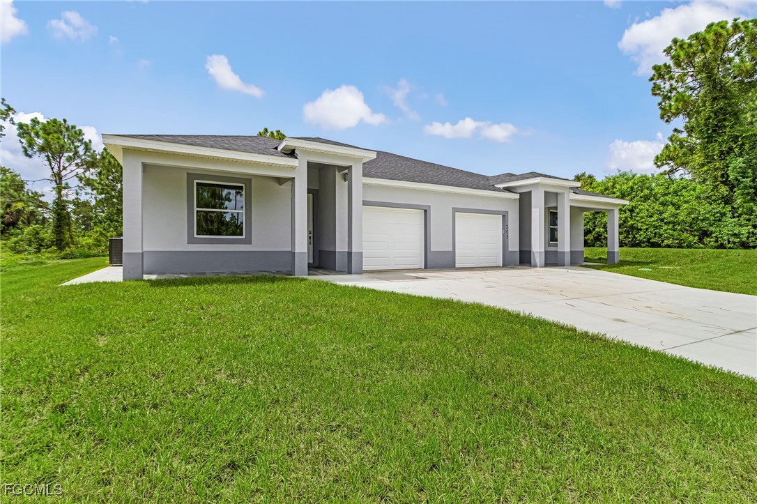 Step into modern, effortless living at this pristine 2025-built duplex, situated on 913 E 12th St in the rapidly expanding Lehigh Acres community. Each mirror-image unit features three generously sized bedrooms and two  bathrooms outfitted with high-end fixtures and elegant finishes. Sunlight floods the open-concept kitchens and living areas, where sleek cabinetry, premium appliances, and stylish countertops invite both everyday meals and entertaining. Every bedroom offers a finished closet, while each owner enjoys the convenience and security of a private attached garage. Built for quality and comfort, the home’s features include durable block-and-stucco construction, tile flooring throughout, impact-resistant windows, a water softener, well water and septic setup. Set on a spacious 0.24-acre lot zoned RM-2—perfect for rental or multifamily use—this property stands out with no HOA fees.