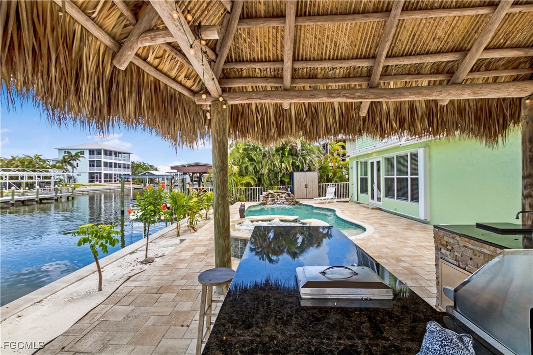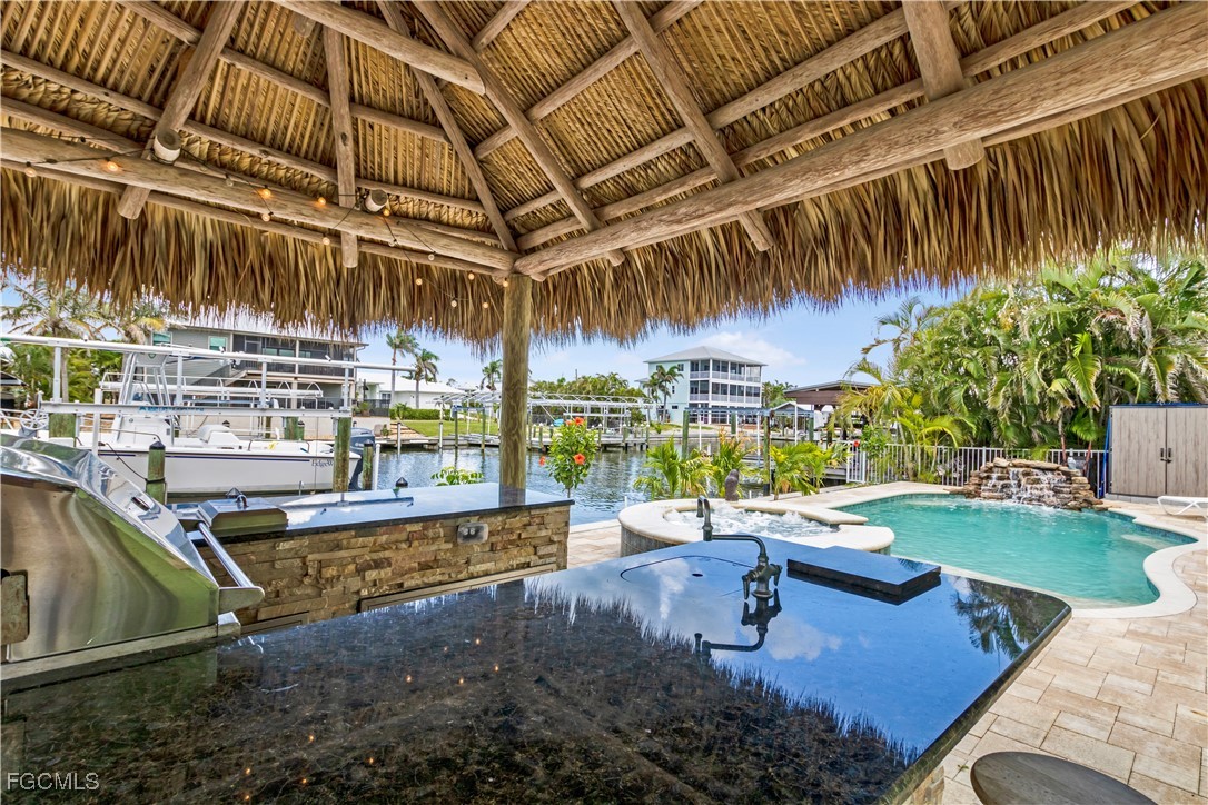 Welcome to luxury island living at this beautifully remodeled 3-bedroom, 3-bath waterfront home in St. James City. Every detail has been updated with no-expense-spared finishes, including a gas range, high-end appliances, premium flooring, and elegant coastal design throughout. The spacious open layout offers abundant natural light, high ceilings, and seamless flow between the living, dining, and kitchen areas. Outdoors, enjoy your own tropical retreat featuring a large outdoor kitchen with built-in gas grill beneath a custom tiki hut, perfect for entertaining by the water. A wet slip is available for guest boat use, making this property a true boater’s paradise. The private in-ground pool and spa are surrounded by a screened lanai with plenty of space for lounging or dining al fresco. Additional highlights include impact windows, updated systems, and thoughtful upgrades throughout. Located minutes from marinas, waterfront dining, and the open Gulf, this home is offered mid-November 2025 through April 2026. Pets allowed upon approval. No smoking; taxes, and cleaning fee apply.